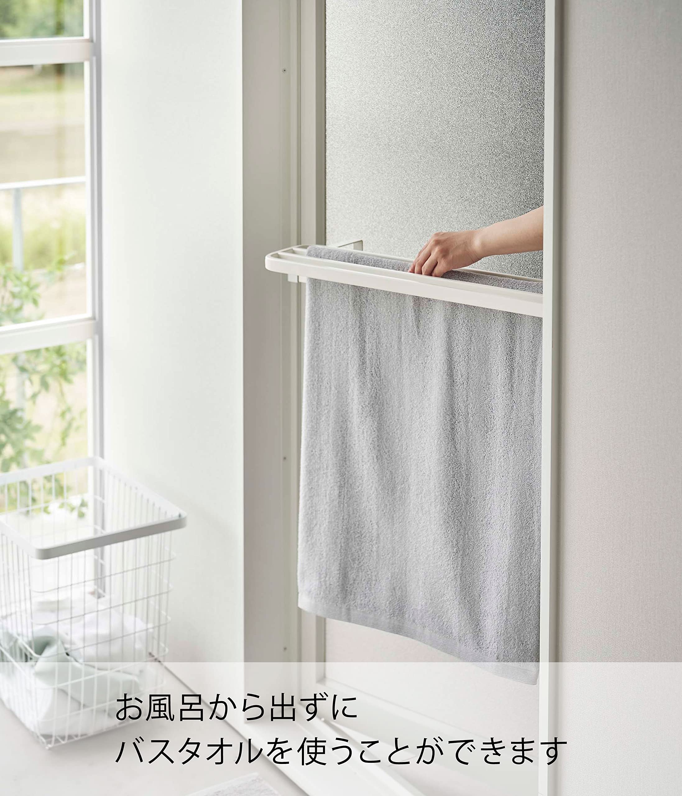 山崎実業(Yamazaki) 浴室扉 タオル掛け上 バスタオルハンガー ホワイト 約W57.5×D22.3×H17cm タワー tower バスタオルバー 簡単設置 パジャマ置き場 5999
