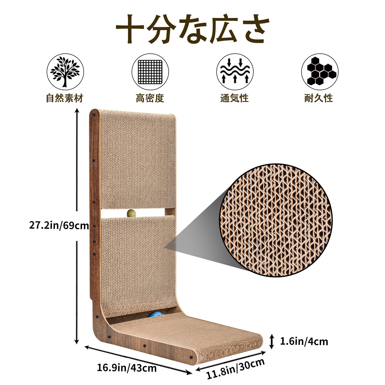 LIFLIX 猫 爪研ぎ 段ボール ガリガリウォール L字型壁立て おもちゃ付き猫つめとぎ H69cm