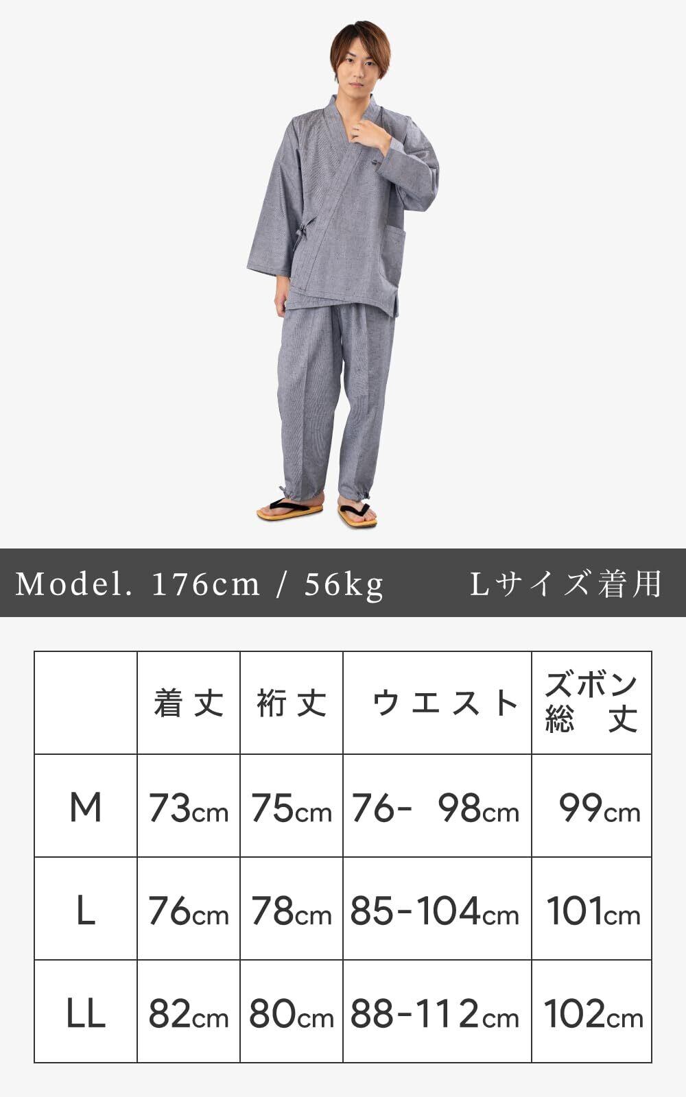 久留米織りのシーチング生地を使用した純日本製の作務衣です。