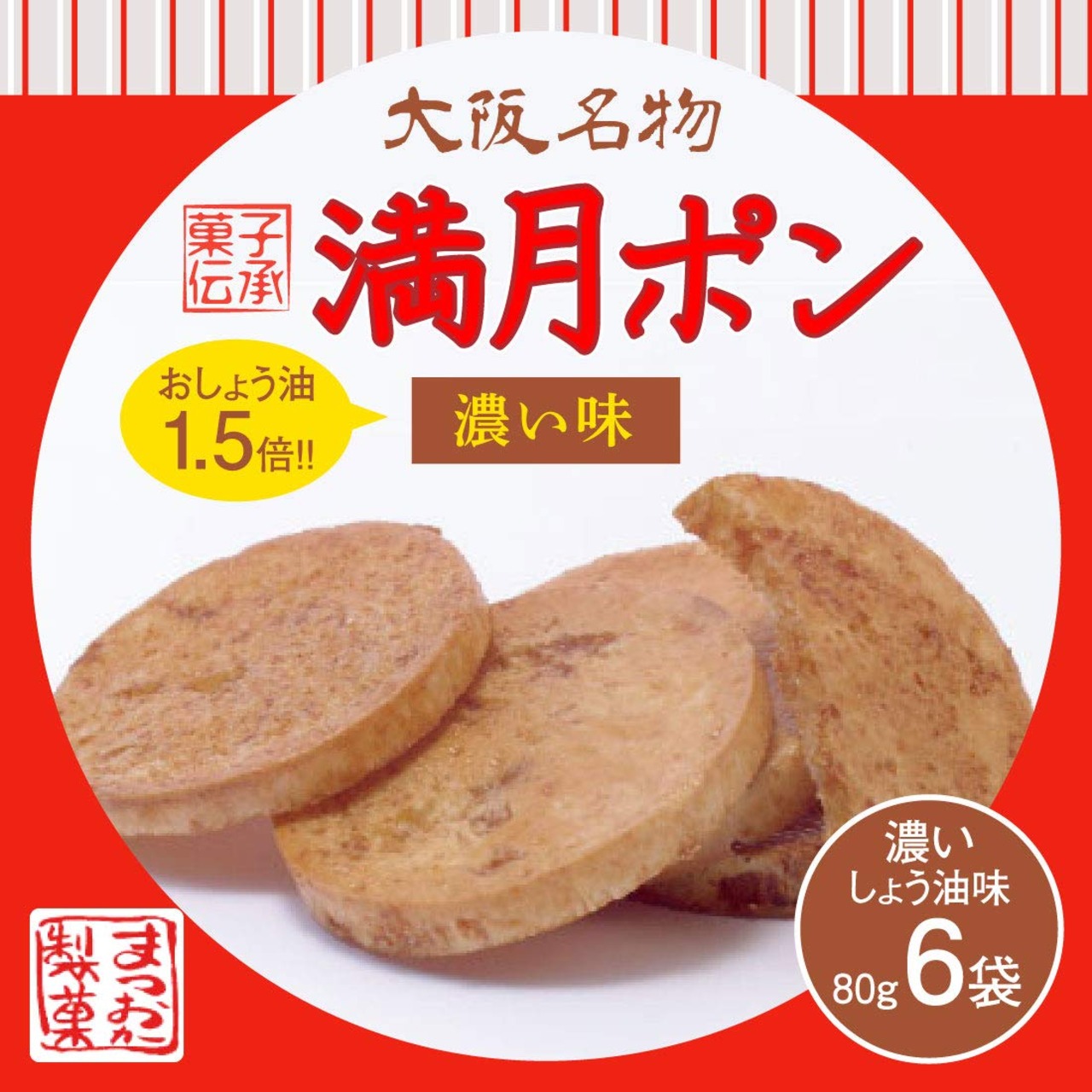 懐かしい 大阪名物 濃い味 満月ポン 80g×6個入り ( 醤油1.5倍 醤油 濃い ポンせんべい 甘辛 せんべい サクサク )【 松岡製菓 】