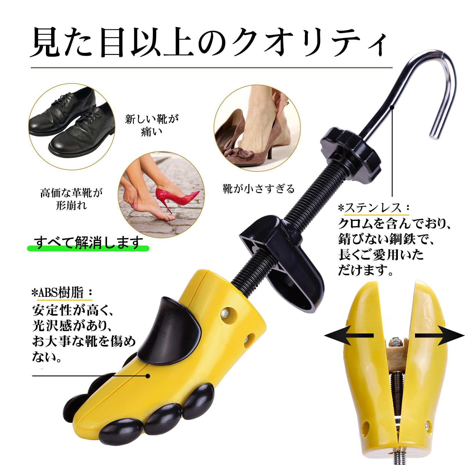 【きつい靴&痛い靴の悩みを解消】靴がきつく、かかと、つま先、外反母趾などが痛いなどのことで困っている方は、このシューズストレッチャーを使えば安心できます!痛い靴、きつい靴を調整して自分にフィットしたサイズに整えます。