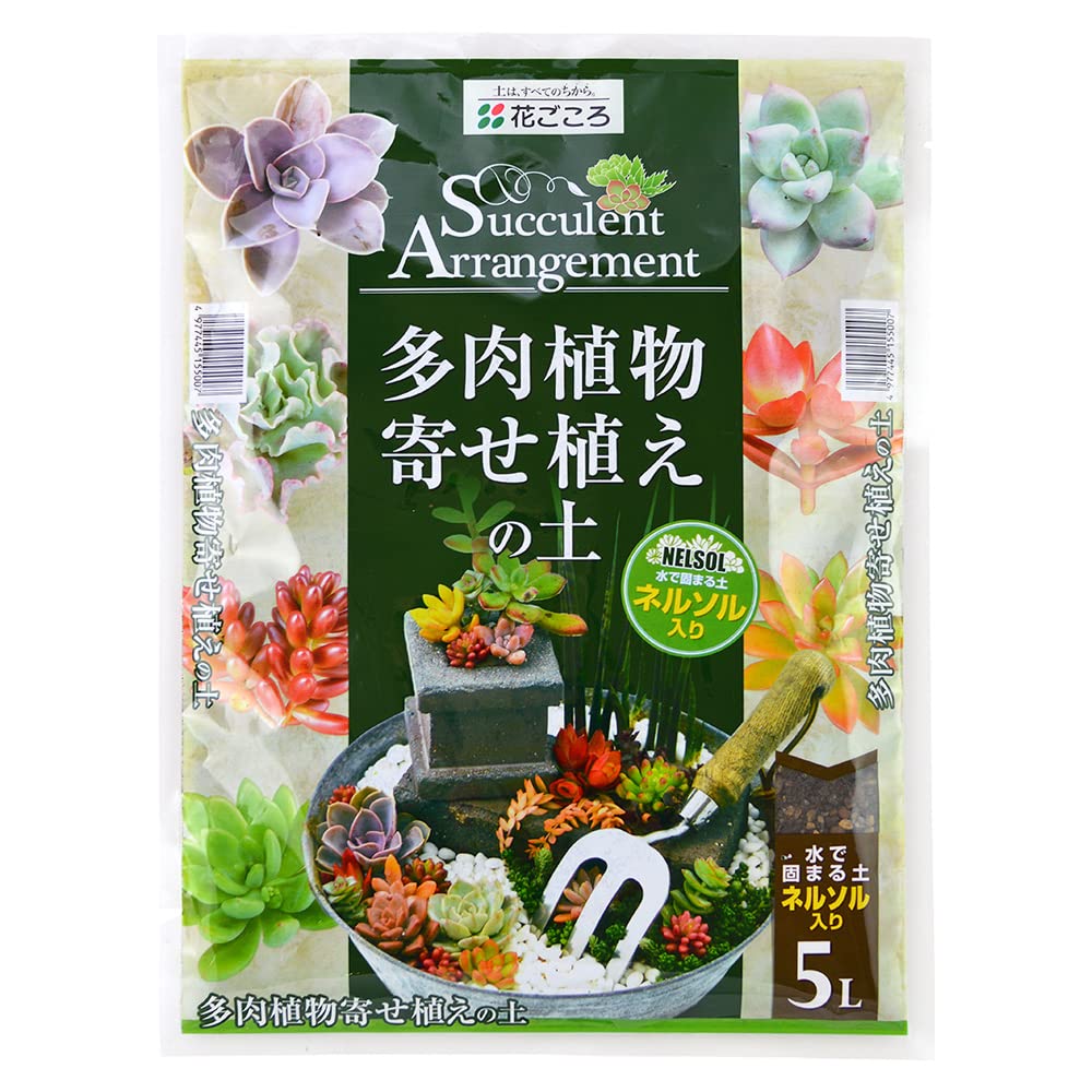 花ごころ 多肉植物寄せ植えの土 水で固まる土「ネルソル」付属 5L
