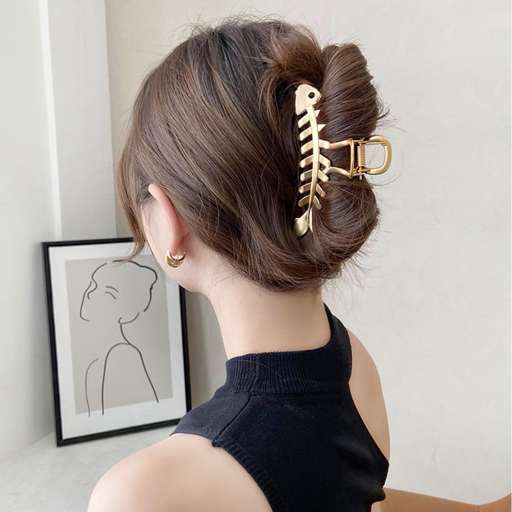 EXCEART バンスクリップ バレッタ ヘアクリップ 髪留め 魚の骨 かわいい レディース ヘアアクセサリー 髪飾り 大きめ おしゃれ 合金 ポニーテールホルダー しっかり オフィス 洗顔 料理