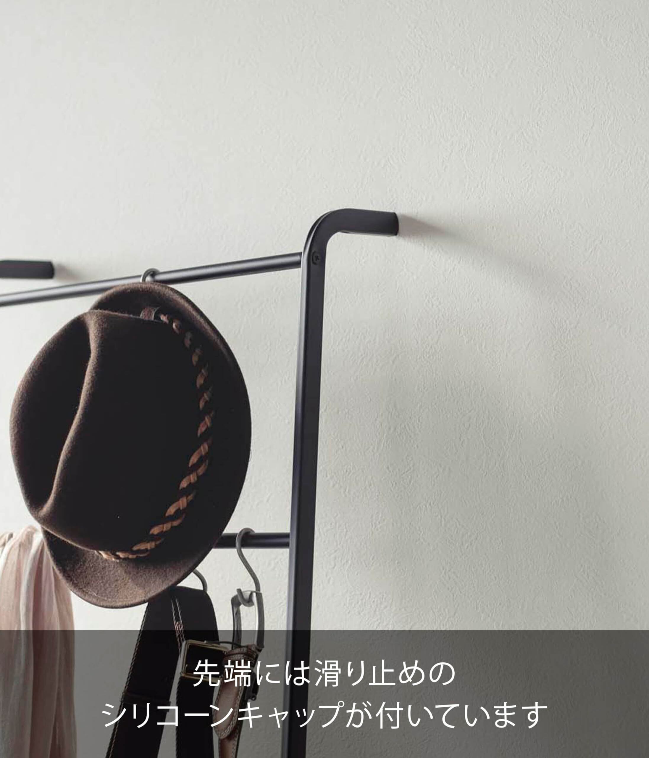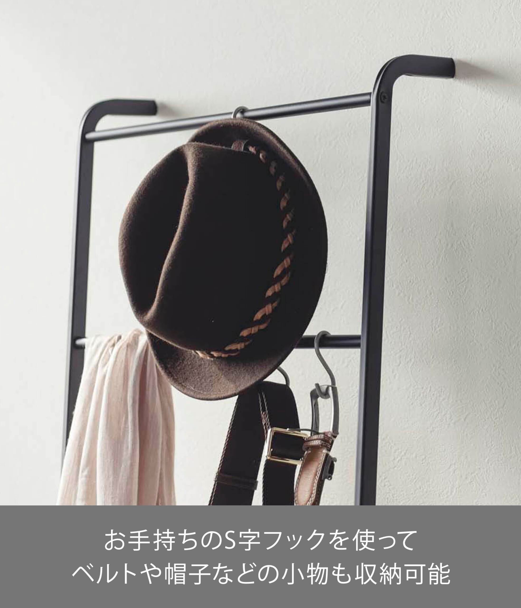 S字フックを使えば、ベルトや帽子 などの小物も収納可能。