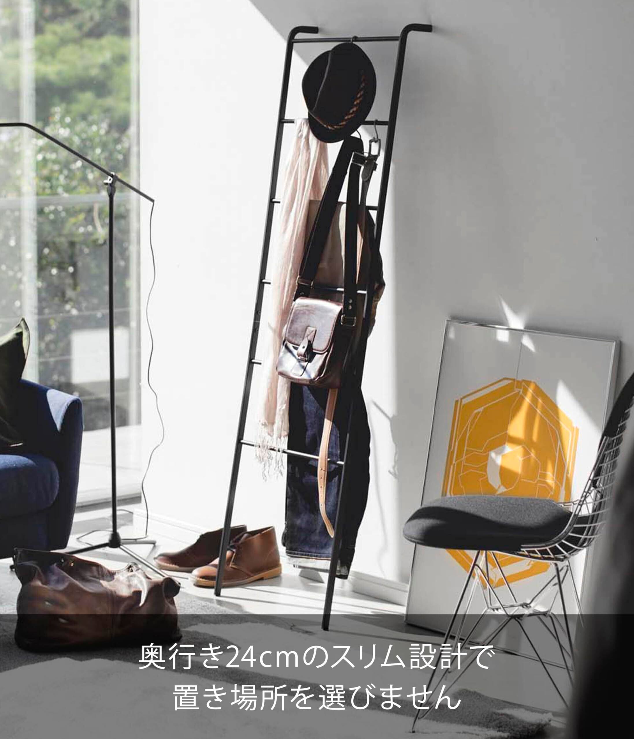 山崎実業 立て掛け収納ラック ハンガーラック はしご ラダーハンガー フレーム ブラック 3964