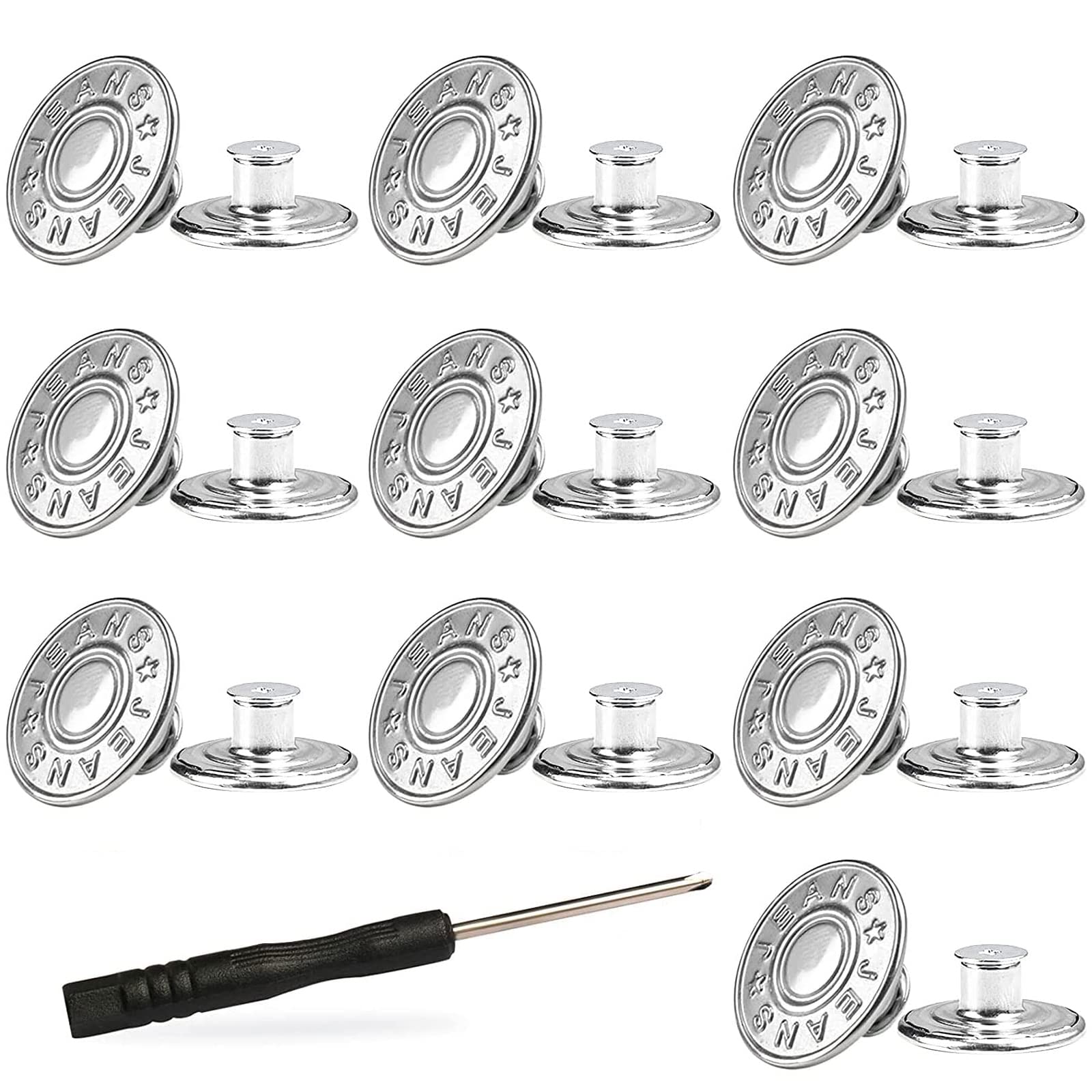 BTtime ジーンズボタン 金属ボタン 17mm 10個セット ネジ式 ジーンズ用 簡単取付け DIY 手作り 延長と縮小可能 専用ドライバー付き (シルバー)