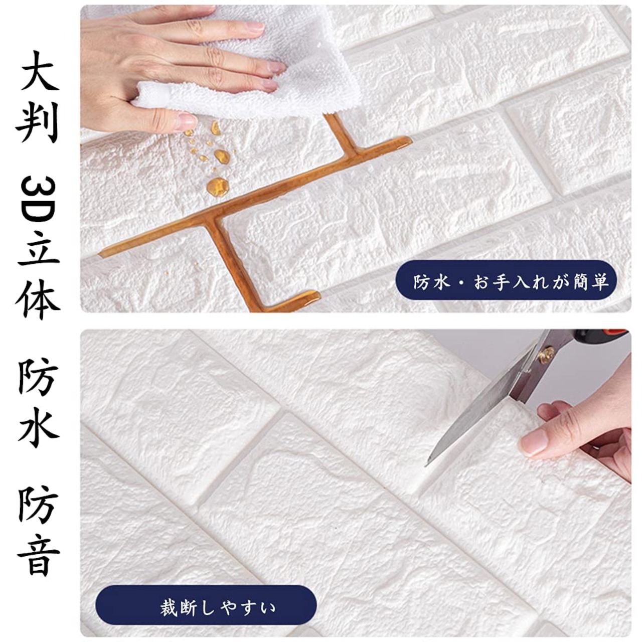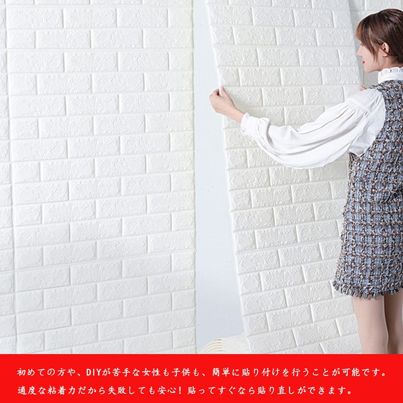 【施工簡単】クッションタイプのブリック壁紙です。シールタイプなので施工も簡単です。接着剤不要、裏にのり付き、自己粘着できるので、簡単に綺麗に壁に貼ります。数分以内に装飾完成します。