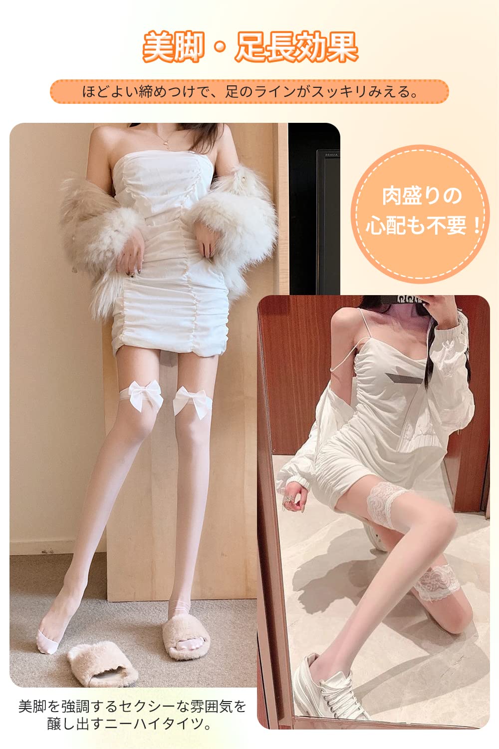 [WindTour] ニーハイソックス 黒 白 レース付き リボン付き ハイソックス レディース 透け感 ストッキング 春夏用 薄手【伸縮性 美脚 通気性 着圧】 女の子