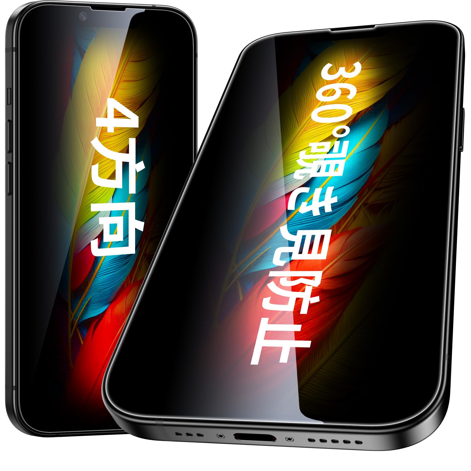 Esanik 360度 覗き見防止フィルム iPhone16e/iPhone14/iPhone13/iPhone13Pro対応 ガラスフィルム 360°全方向 覗き見防止 保護フィルム ガイド枠付き 強化ガラス 硬度9H 指紋防止 飛散防止 上下左右 360°覗き見防止