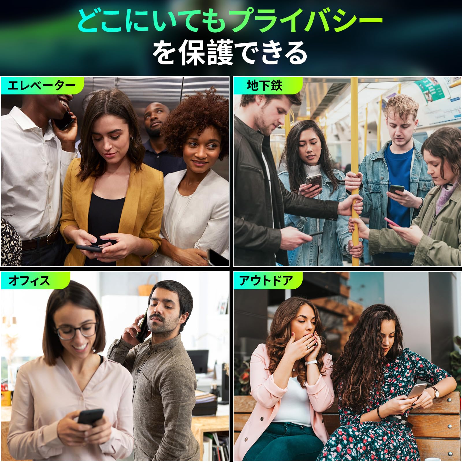 特徴 防指紋, 360度覗き見防止, 耐落下性, 9H 表面硬度, 耐傷性