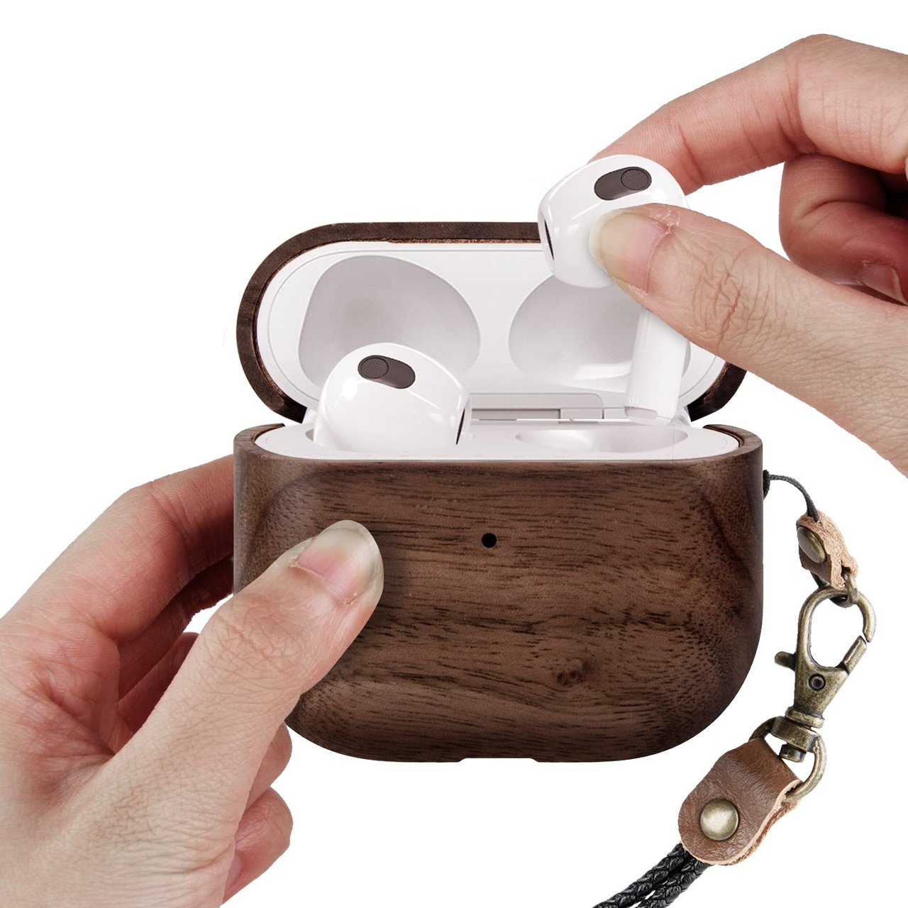 XFS AirPods 3 ケース ナチュラルウッドケース 木製 AirPods 3 カバー 耐衝撃保護 エアポッド カバー 天然木 脱着簡単 着装まま充電可能 ワイヤレスイヤホンケース ストラップ付き (サクラギ)