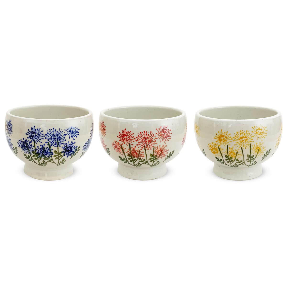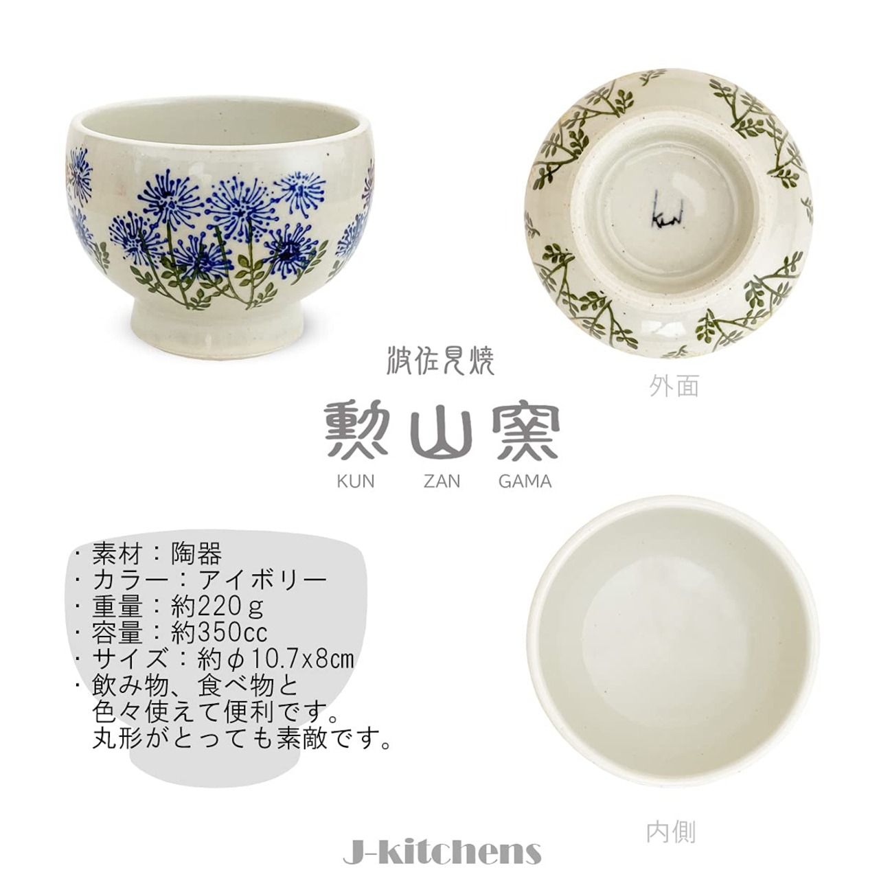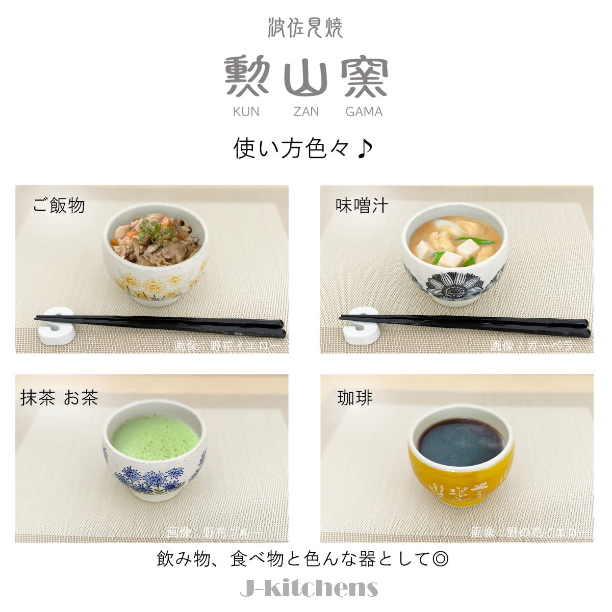 J-kitchens 勲山窯 汁椀 3個 セット 飲んだり食べたり フリー丸 碗 350cc 波佐見焼 日本製 野花 ブルー レッド イエロー