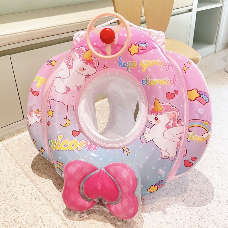 de'niko 浮き輪 子供用 ベビー浮き輪 足入れ ベビーフロート ハンドル付き 浮き具 強い浮力 水泳リング 可愛いプリント 水遊び お風呂 プール 海水浴 キッズ 男の子 女の子 1歳-5歳の子供用