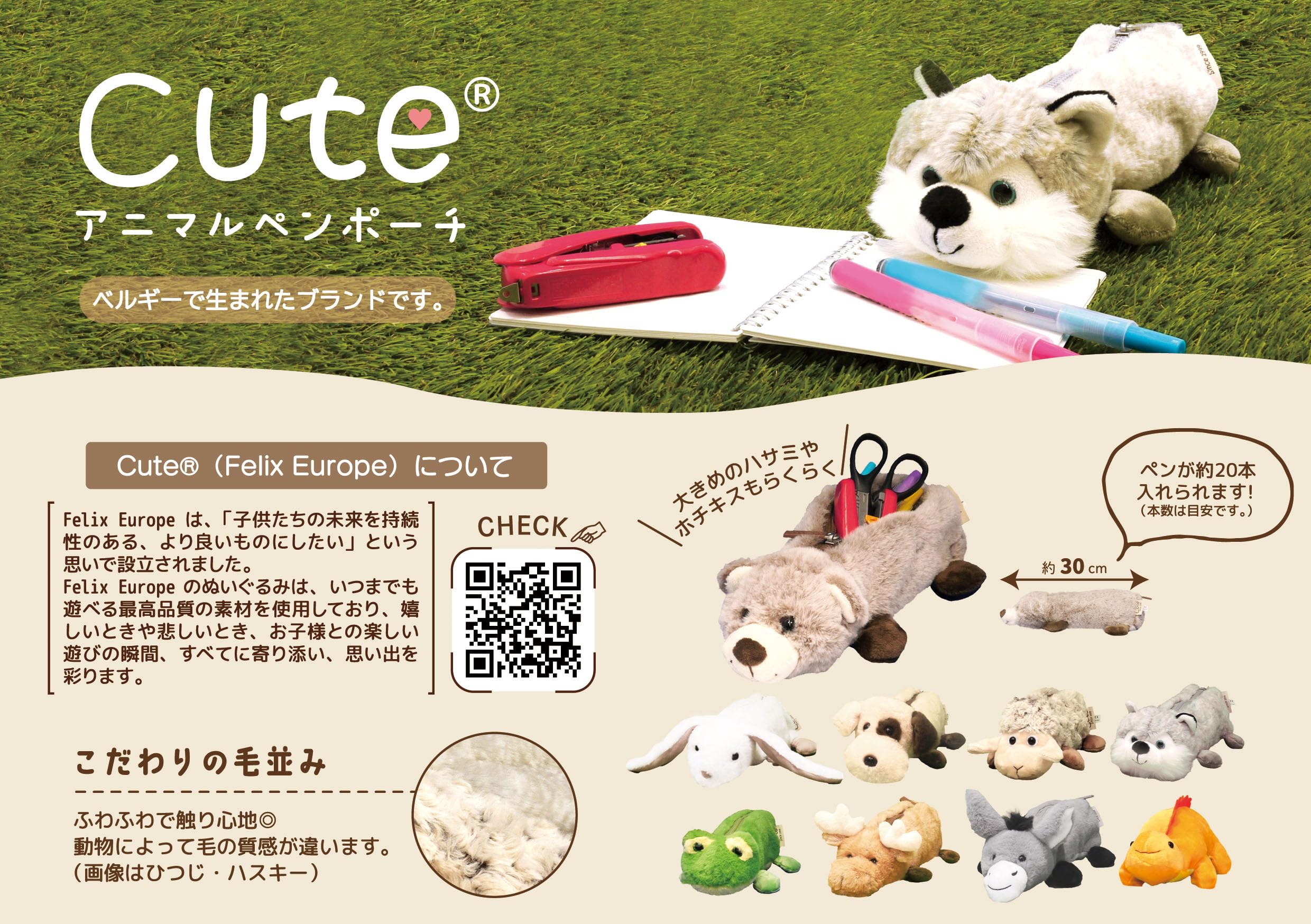 Cute(R)(Felix Europe)シリーズ・・・Felix Europeは『子どもたちの未来を持続性のある、より良いものにしたい』という思いで設立されました。Felix Europeのぬいぐるみは、いつあでも遊べる最高品質の素材を使用しており、嬉しいときや悲しいとき、お子様との楽しい遊びの瞬間、全てに寄り添い、思い出を作ります。