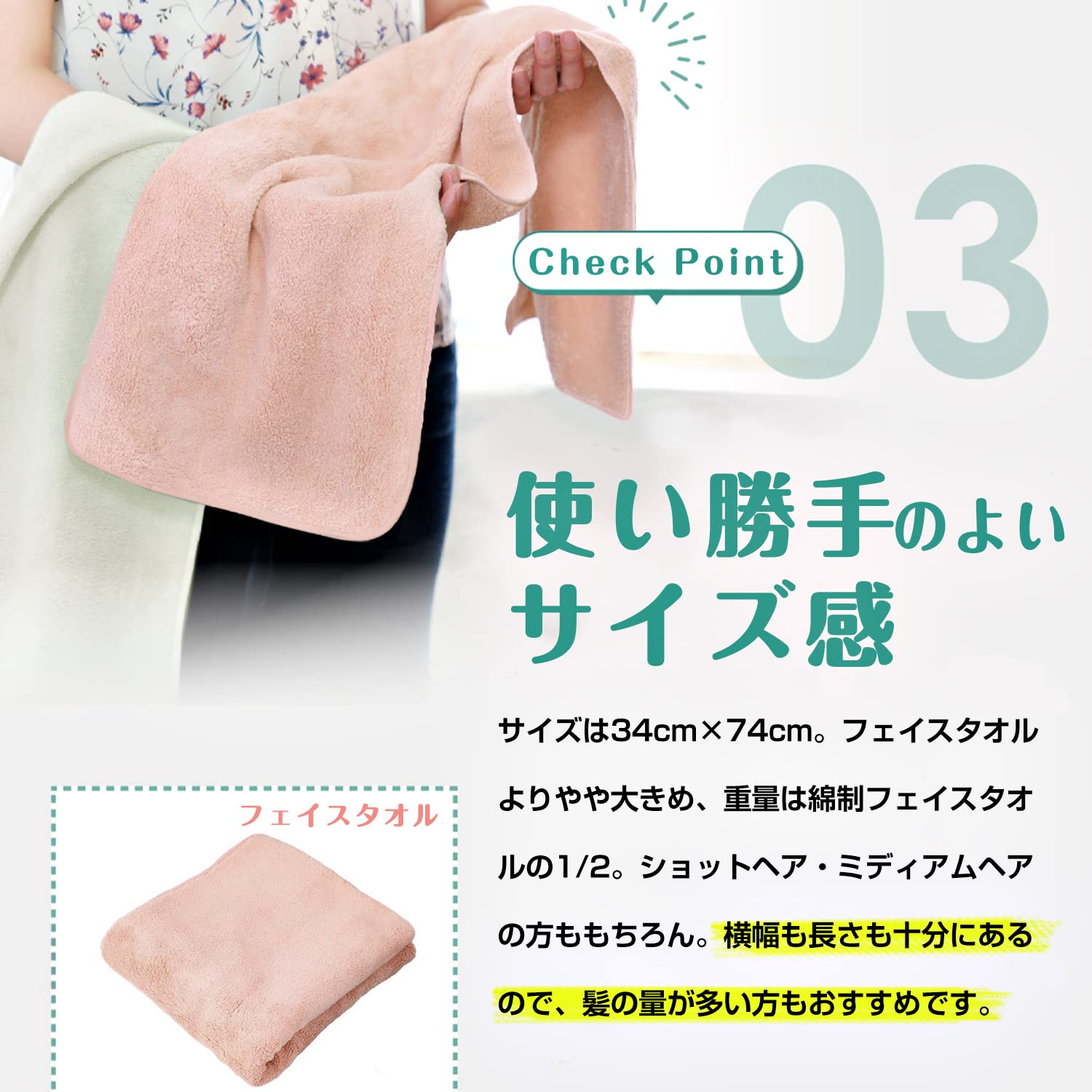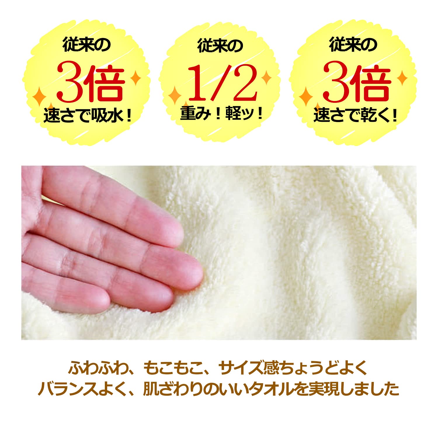 【抜群な吸水力】マイクロファイバーで作られていますので、吸水力は綿より3倍以上勝るという誇りの性能を持つ。繊維に多くの隙間があり、直径8マイクロメートル以下で、髪の毛の100分の1以下という細さです。なめらかな手触りと速乾性能や吸水性能の高さが光るポイント。身体を包み込むように羽織るだけでしっかり吸水します。