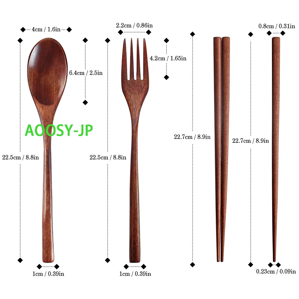 AOOSY 木のスプーン フォーク 箸 6点2セット 塊木で掘り出した接着剤なし天然木製食器セット AOOSY 天然漆 弁当箱用 食堂用 サラダ カレー スープ 中華料理用 チャーハン