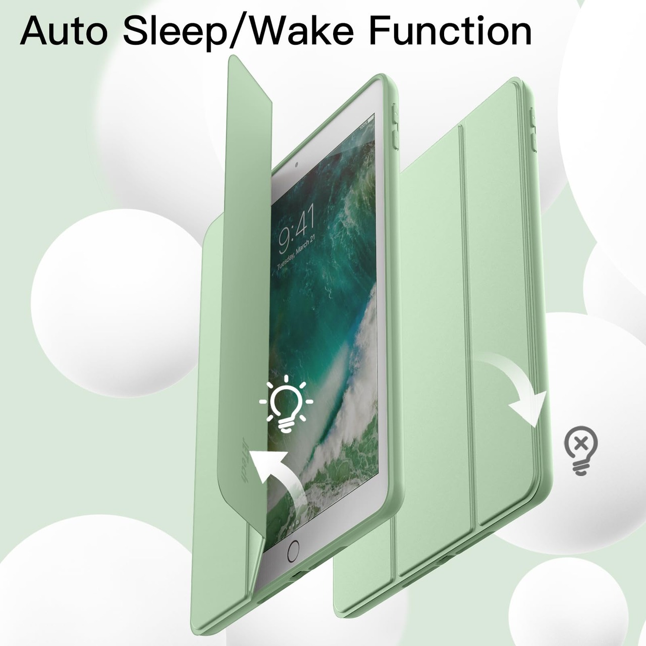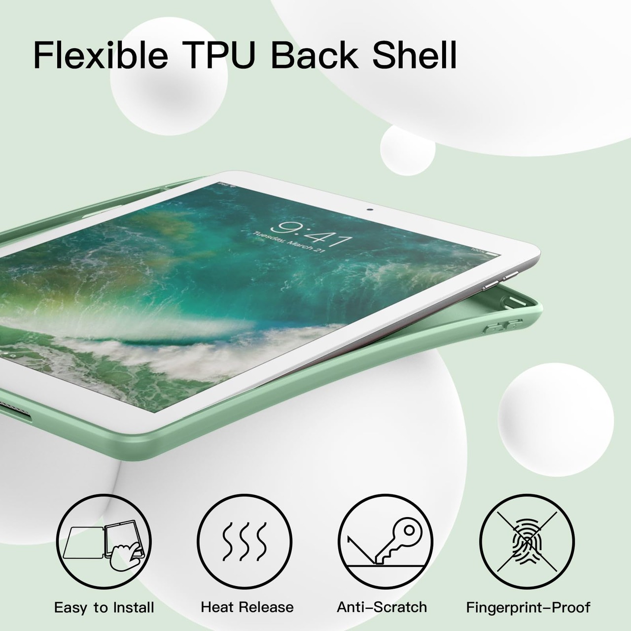 JETech iPad 9.7インチ ケース(第6/5世代、2018/2017モデル用)Pencilホルダー付き ペンシル ソフトTPUバック スリム保護カバー オートウェイクアップ/スリープ機能付き (抹茶グリーン)