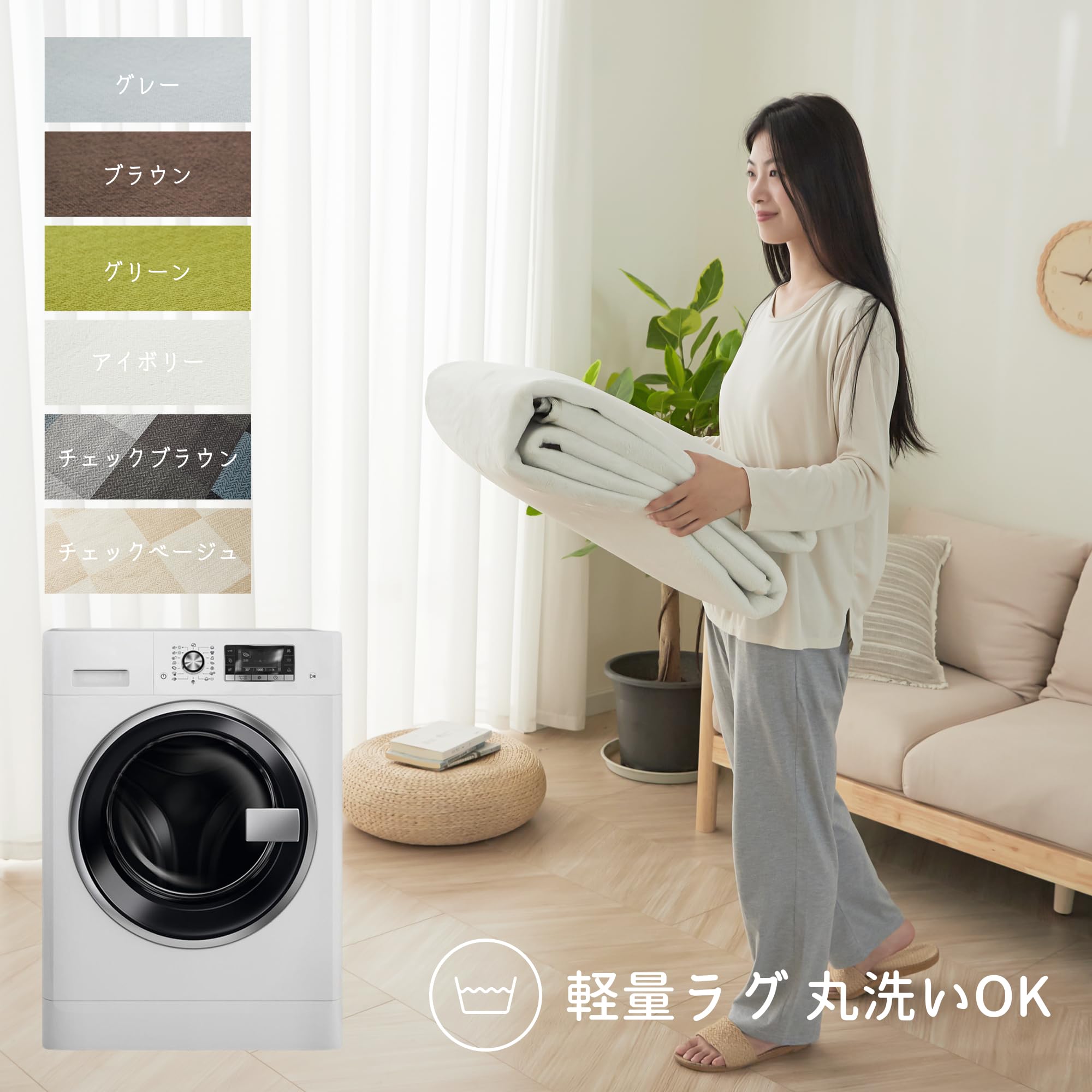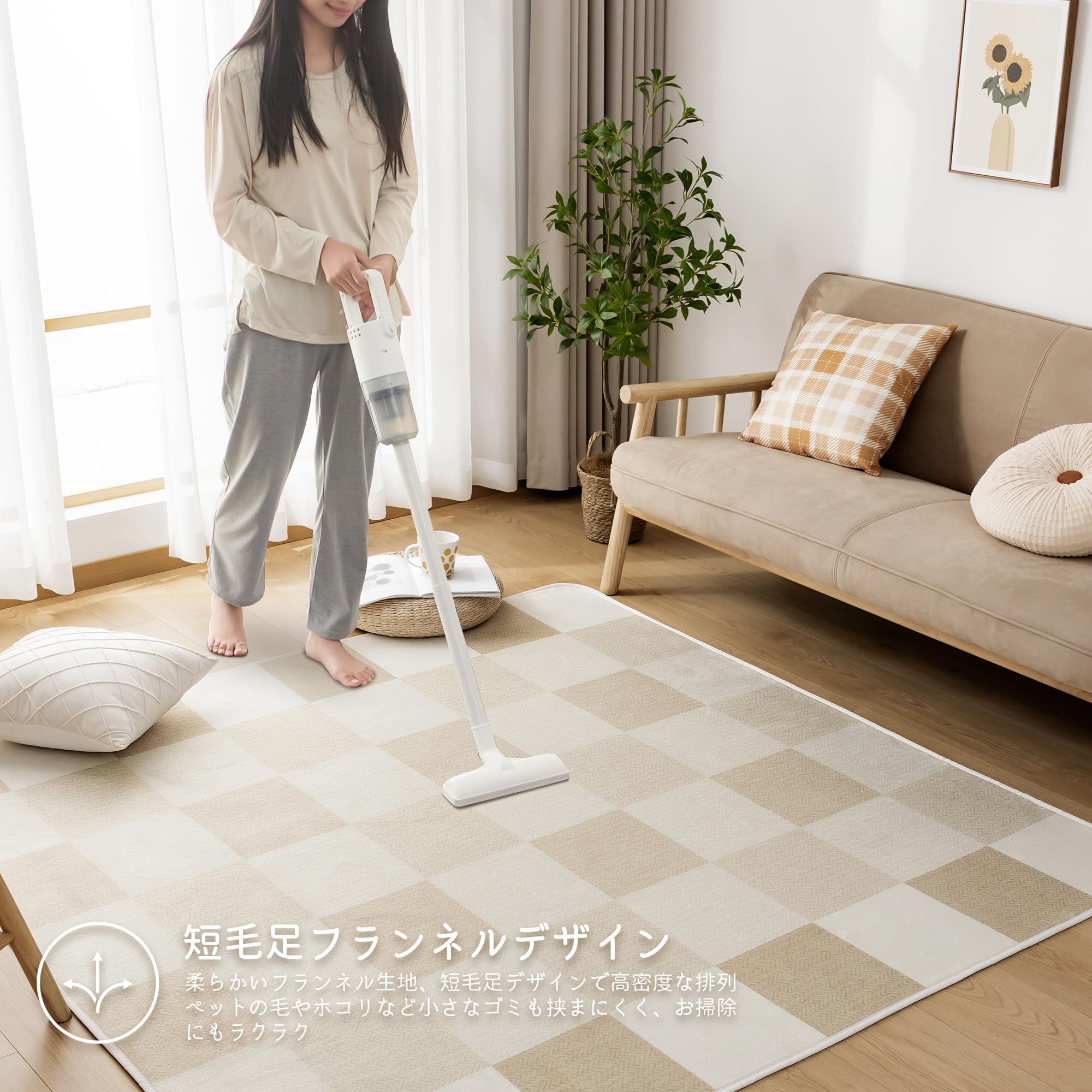 HARUMIN カーペット ラグ ラグマット 洗える 135×185cm 約1.5畳 絨毯 北欧 おしゃれ 抗菌 防臭 滑り止め オールシーズン 床暖房 ホットカーペット対応 床保護マット チェックベージュ
