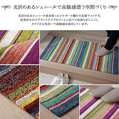 明るいデザインの玄関マットです。先染めタイプのため、色落ちもしにくく色合いも鮮やかです。薄めのタイプになるので、つまずいてしまう心配もございません。裏地には滑りにくく合成ゴムを使用しています。手洗いで、じゃぶじゃぶ洗うことが可能です。玄関だけでなく、ベッドサイドやソファー前などお部屋のワンポイントとしてもご使用できます。