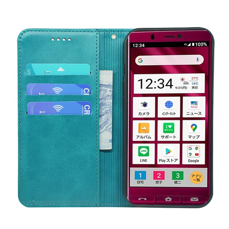 シンプルスマホ5 ケース 手帳型 SoftBank A001SH / Simple Sumaho5 ケース 手帳型 カバー PUレザー カード収納 財布型 耐衝撃 ケース マグネット スタンド機能付き 5色 (シンプルスマホ5 / SoftBank A001SH / Simple Sumaho5 ケース 手帳型) (グリーン) | kor Cat*