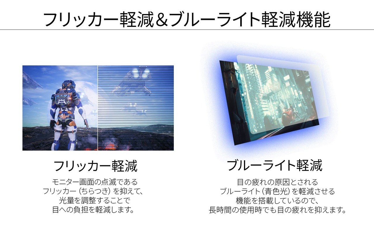 上下左右178度に対応した広視野角IPS系パネルを搭載。コンテンツを色鮮やかに映し出します。HDR(ハイダイナミックレンジ)に対応。明るい部分も暗い部分もくっきり表現しリアルに迫った深みのある映像を演出します。HDR対応のブルーレイディスクやビデオ・オン・デマンド、ゲームなどの表示が可能です。