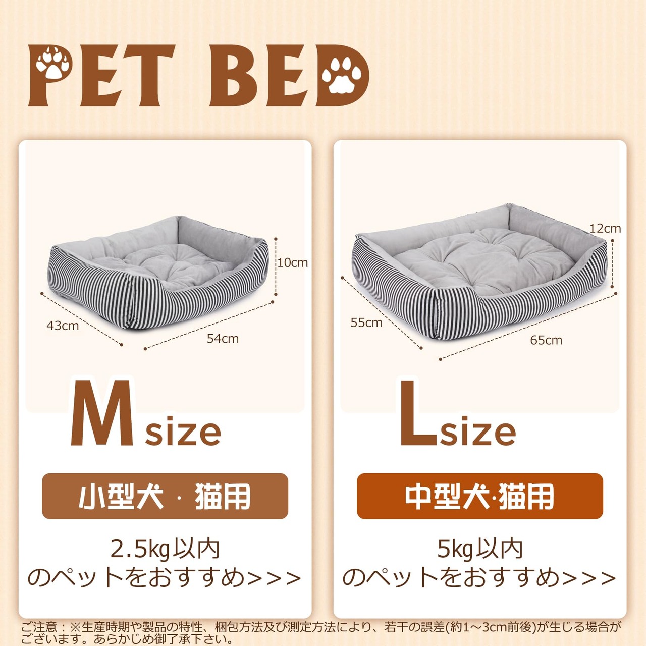 FYB ペットベッド 犬ベッド 猫ベッド クッション ペットソファー マット 滑り止め 通年 丸洗い 小型犬 中型犬 (L 縞模様)