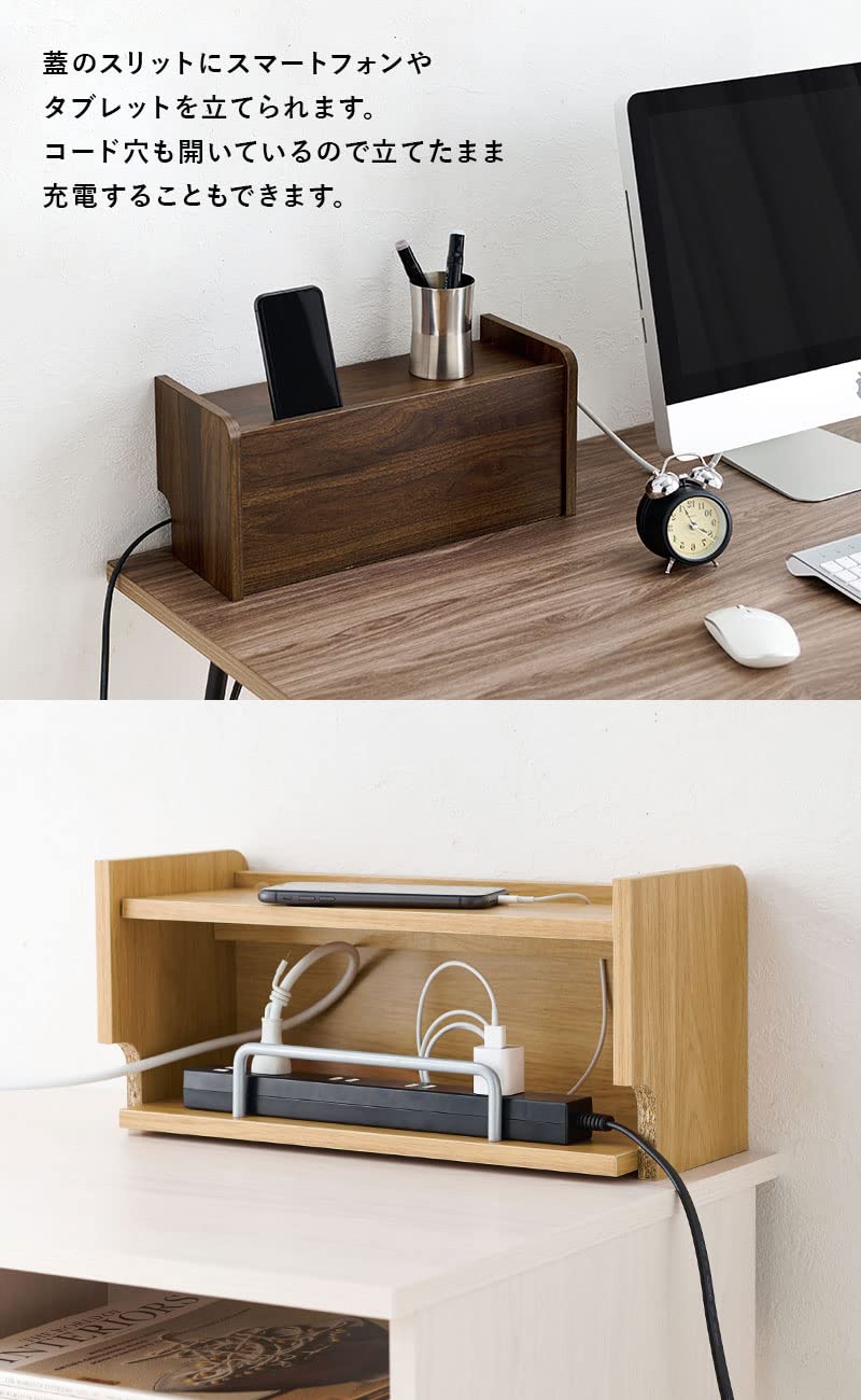 萩原(Hagihara) ケーブル ボックス ルーター 収納 1段 タップ 電源 コード 配線隠し スマホスタンド 木目調 小型 ブラウン 幅39.5 奥行15.5 高さ18 1台 RUD-1167BR | kor Cat*