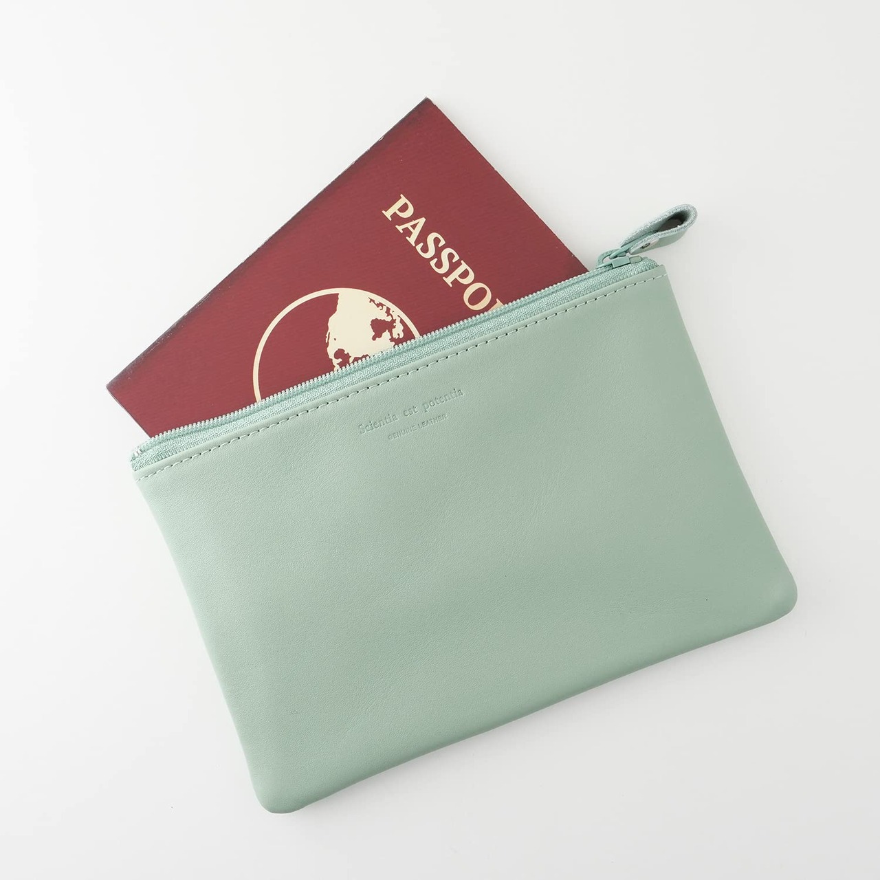 ●マチ無しでフラットなミドルサイズのファスナー付きポーチです。パスポートも入れられ、多用途に使えます。