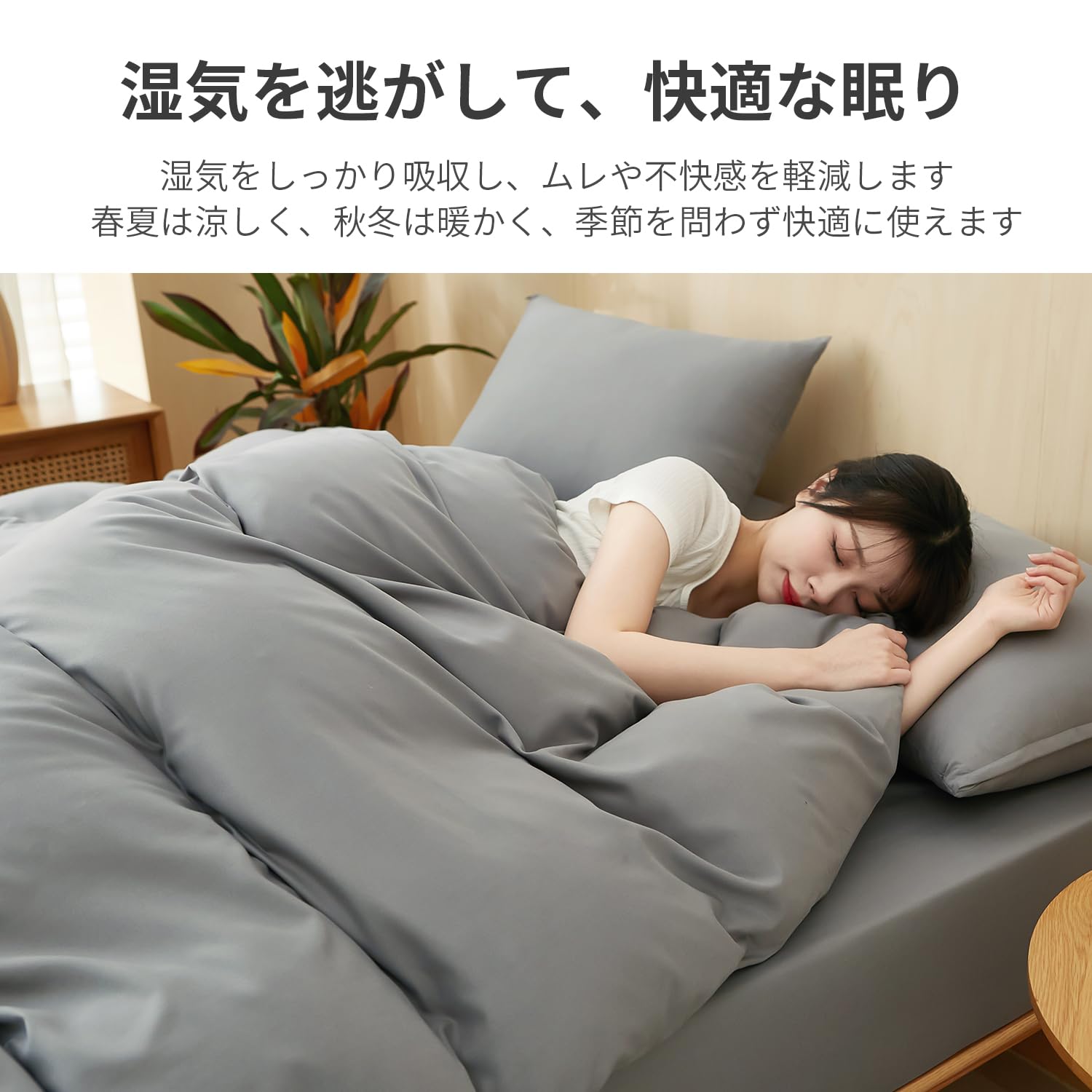 <通気性と速乾性>: ポリエステル 100%を使用するため、優れた通気性を持っています。睡眠中に生成された水分を吸収し、寝汗をかいても快適です。毛玉にりにくい、シワになりにくい。洗った後は素早く乾かすことができます。真夏から冬場までオールシーズンで快適にお使いいただける掛け布団カバーです。