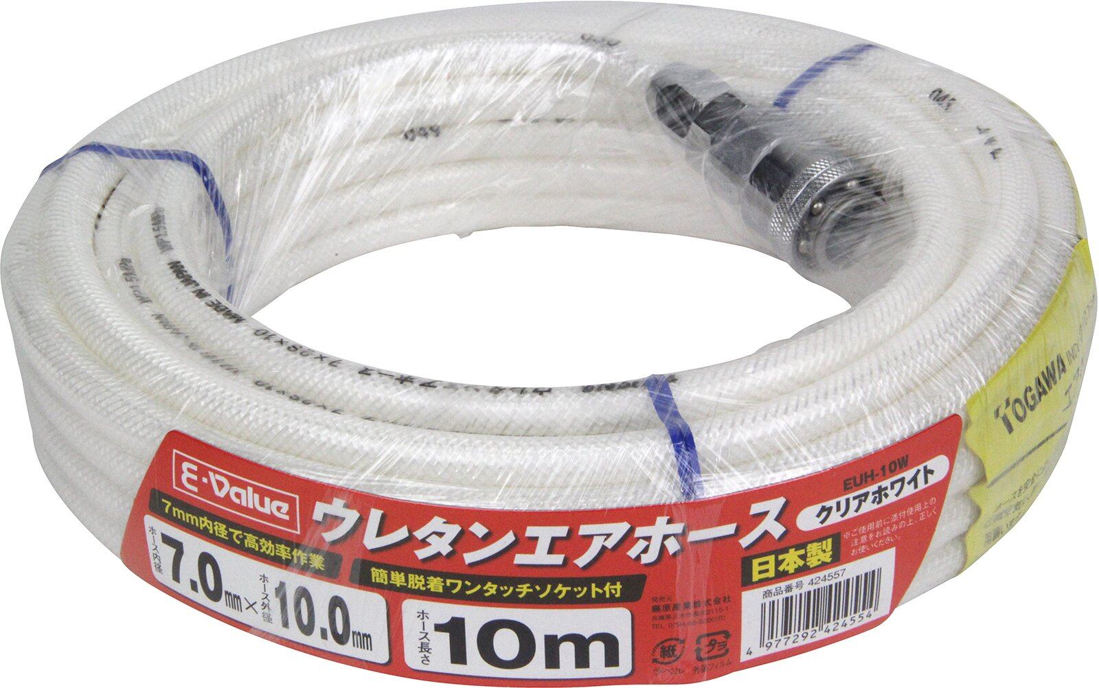 イーバリュー(E-Value) ウレタンエアホース 10m 常圧用 内径7.0mm×外径10.0mm クリアホワイト EUH-10W 日本製