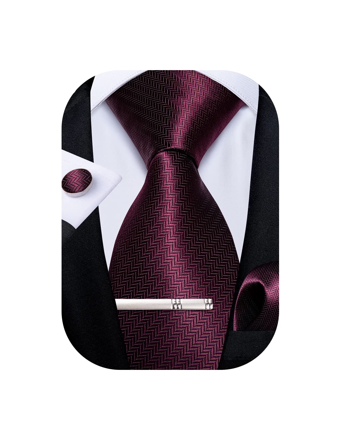 セット内容:ネクタイ(長さ150cm*大剣先幅8cm)、ポケットチーフ(23*23cm)、タイピン、カフスボタン、4点セットです。ストライプ、無地、フローラル、チェック柄などのパターンネクタイをご用意しており、スーツやシャツにピッタリマッチします。