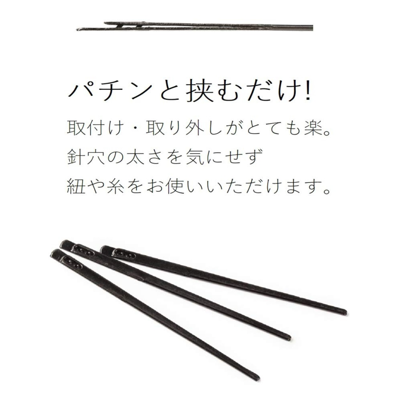 3本 1セット。穴に通すことなく挟むだけなので革ひもなど太い糸を縫うのに便利。