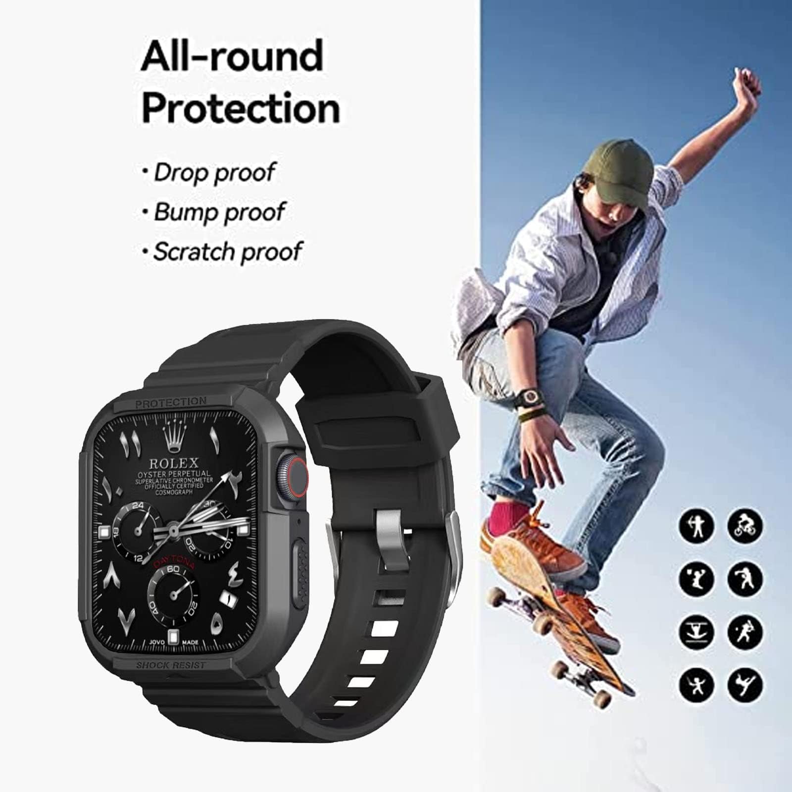 【多重保護】一体化したデザインのバンドは性質を持った柔軟なプレミアムTPU素材を採用し、時計を全面的に保護できます。隆起したエッジデザインにより、高い耐衝撃性があり、アップルウォッチケースを引っかき傷や衝撃から完全に保護します