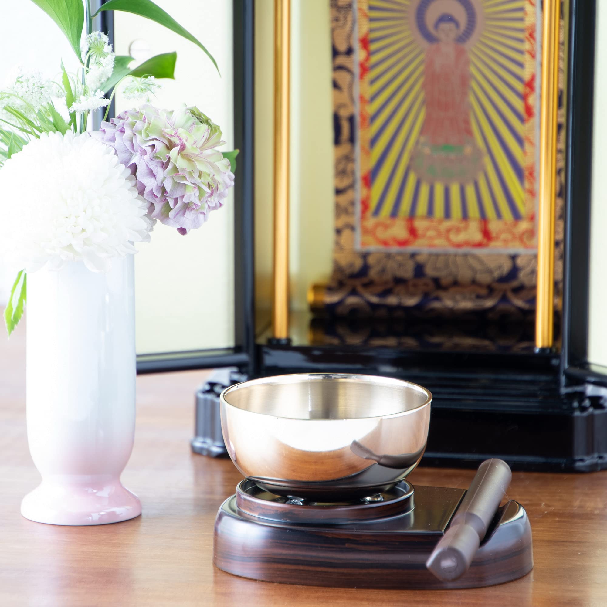 鐘の音を鳴らし、祈りを届けるために毎日使うからこそ、飽きのこないシンプルなデザインで作成しております。伝統的な厨子型仏壇からモダン仏壇まで、どのタイプの仏壇にもあわせやすいお鈴です。お手持ちのお香立てや香炉などともあわせやすいデザインです。