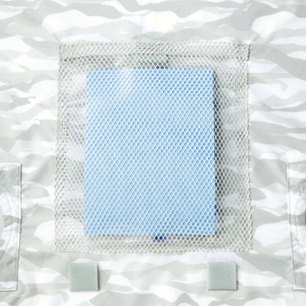 Z-DRAGONブランドからポリエステル100%空調服ベスト、インパクトのあるミリタリーテイスト、保冷剤用メッシュポケット付き。