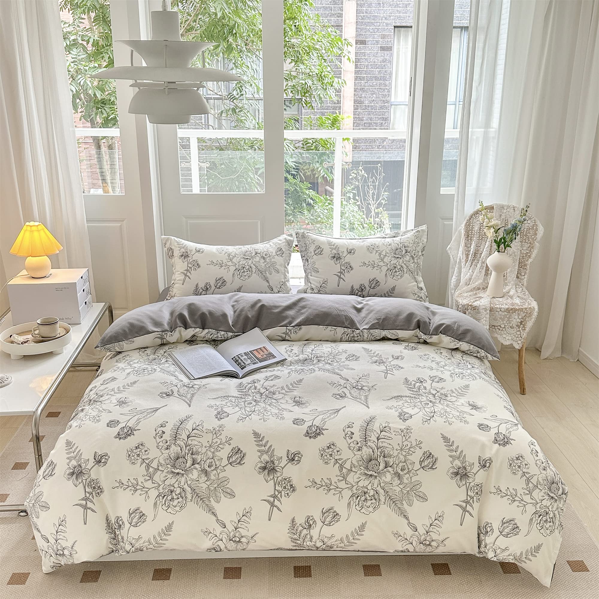 BUKAROOM 【布団カバーセット ダブル4点セット】布団カバー ダブル セット 枕カバー 掛け布団カバー ボックスシーツ 寝具カバー 花柄 おしゃれ ブラック(掛カバー190*210cm) | kor Cat*