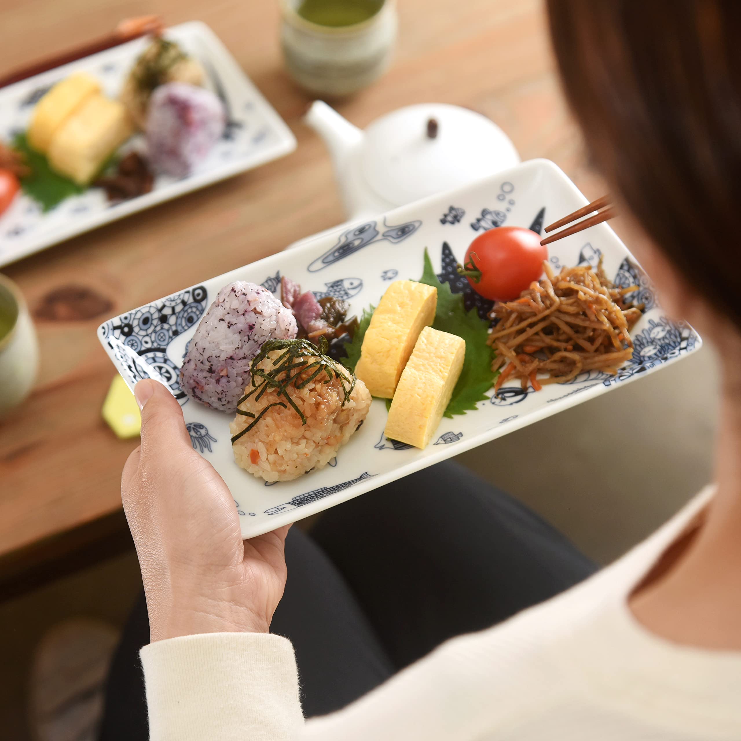 「染付古波佐見 長角皿」と同じ形なので、柄を取り合わせて購入しても重ねて収納が可能です。
