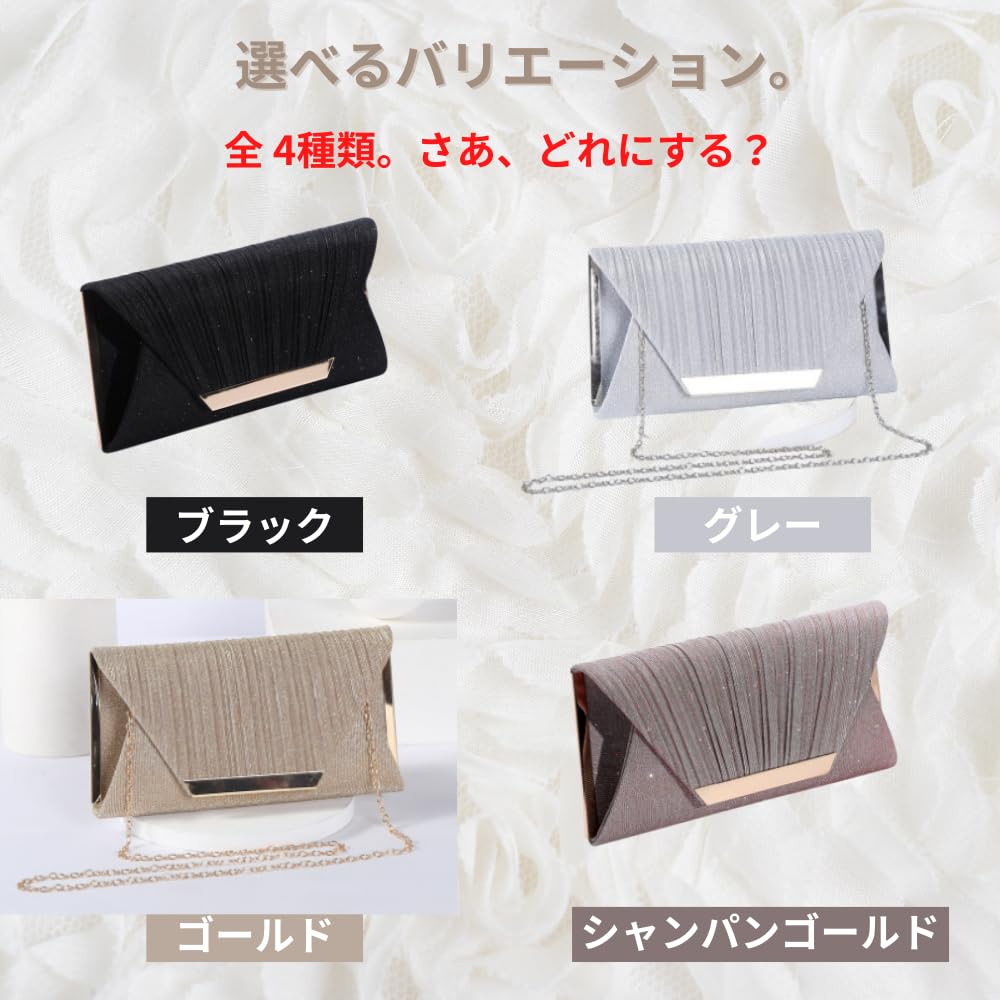 [ORIJIRI] 結婚式 バッグ 大きめ パーティーバッグ ショルダー ゴールド フォーマル チェーン付き クラッチバッグ 2WAY