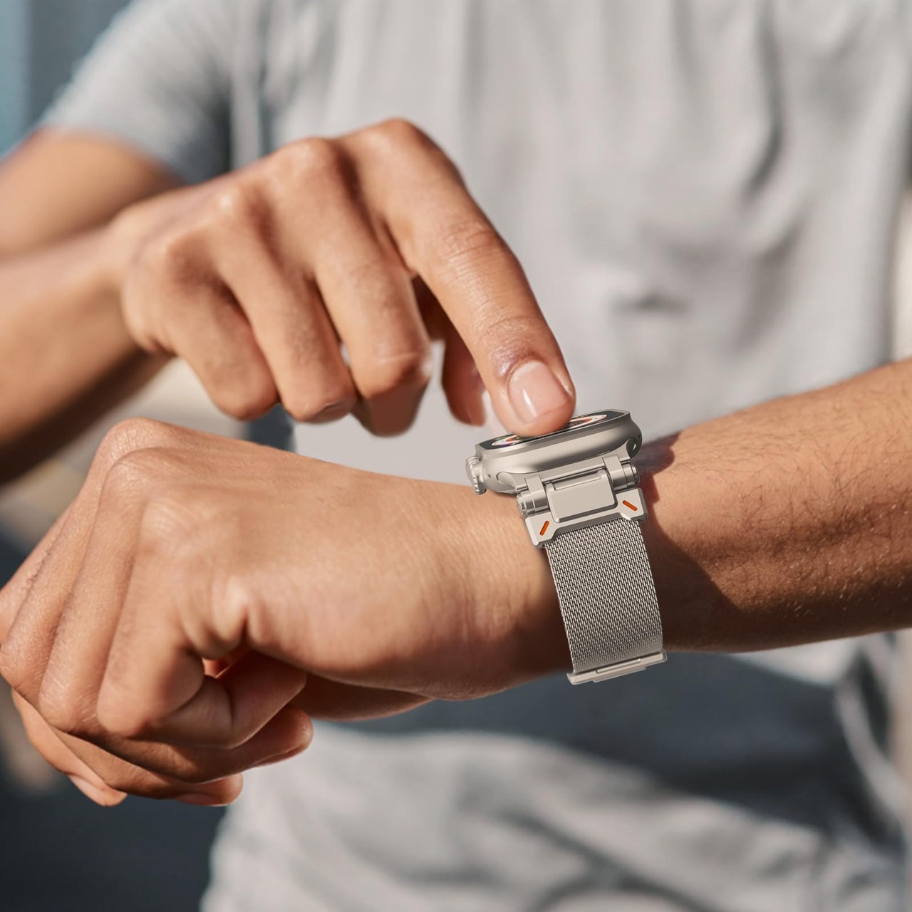 【Ultra風】Zumyzu コンパチブル アップルウォッチ ステンレス バンド 49mm 46mm 45mm 44mm 対応 Apple Watch Ultra 2/Ultra Series 10/9/8/7/6/5/4/SE メタル ベルト グネット式バックル 無限に調整可能 強力な磁 通気 アップルウォッチ用 交換ベルト