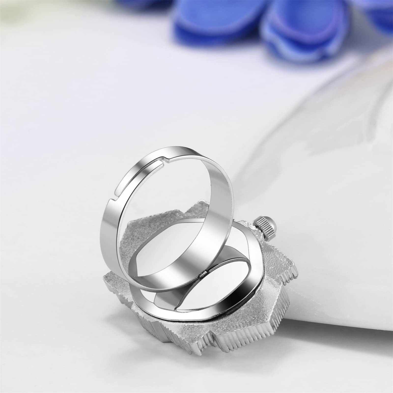 リングウォッチ レディース フリーサイズ 3ATM防水 スクエア リング時計 指輪ウォッチ 数字アナログ 可愛い シルバー ホワイト レディース ファッション アクセサリー