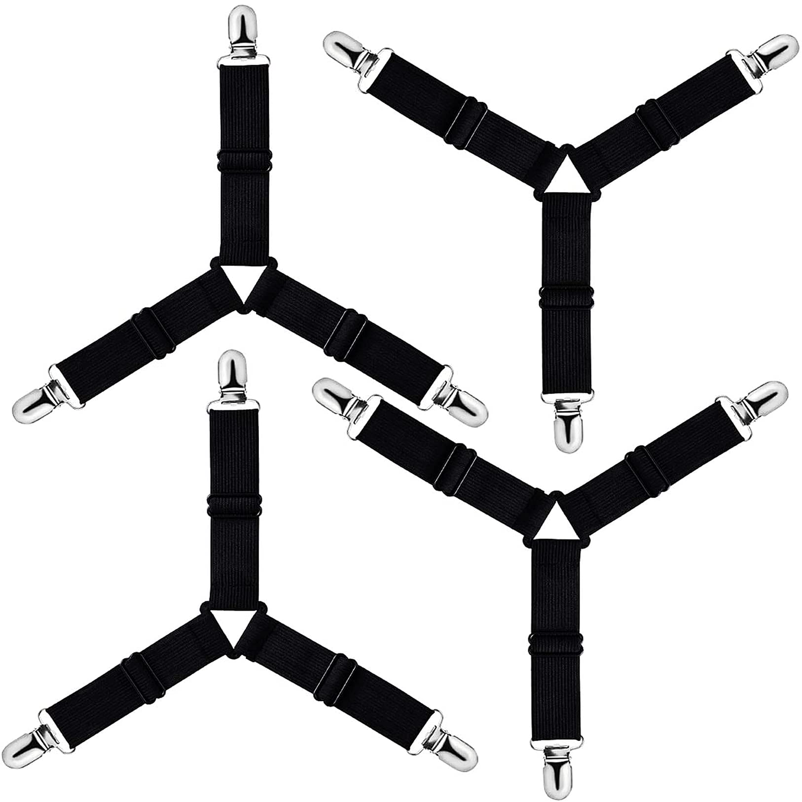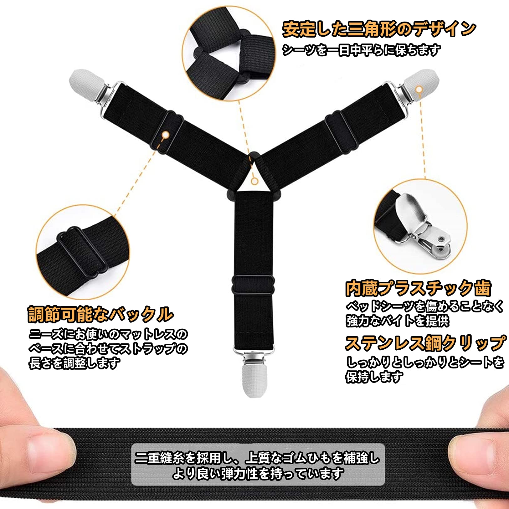 FaceColor ベッドシーツクリップ 4本セット ブラック 三角形ゴムバンド シーツズレ防止 フラットシーツ 調節可能 ゴムバンド シーツ固定 ズレ防止クリップ コーナー止め固定 ズレ防止クリップ ミスアライメント防止 滑り止め 動き防止 【シーツ、ソファ、アイロン、テーブルクロス】 フラット対応