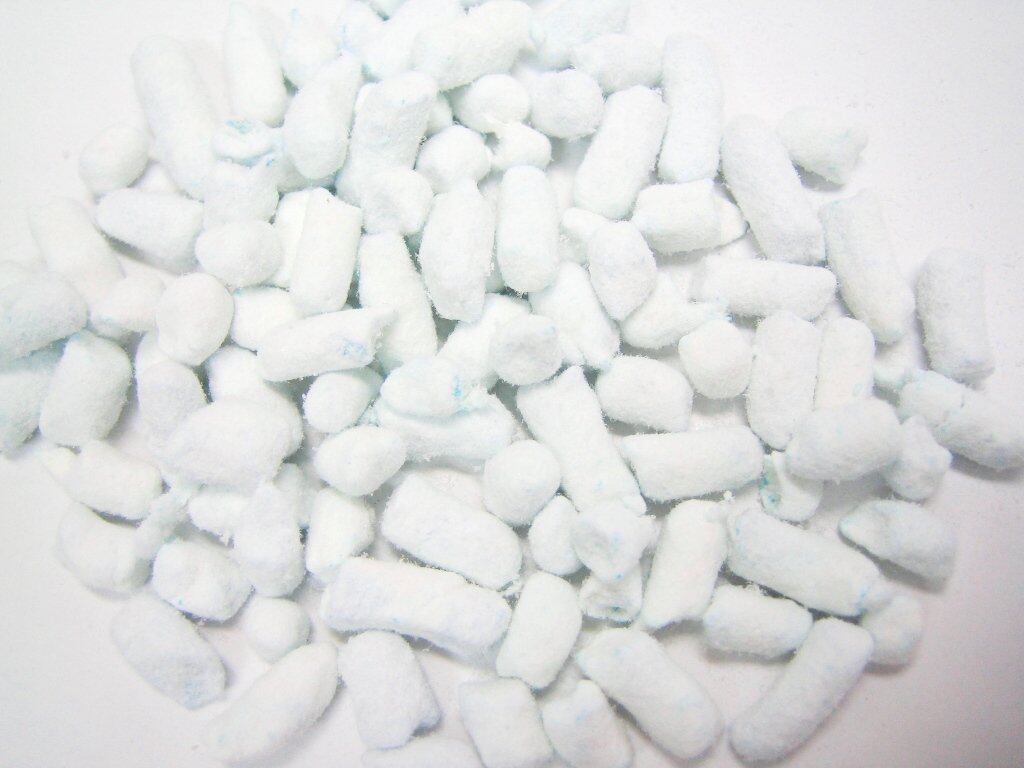 再生パルプを主原料とした固まる紙製猫砂。濡れた部分がブルーに変わります。