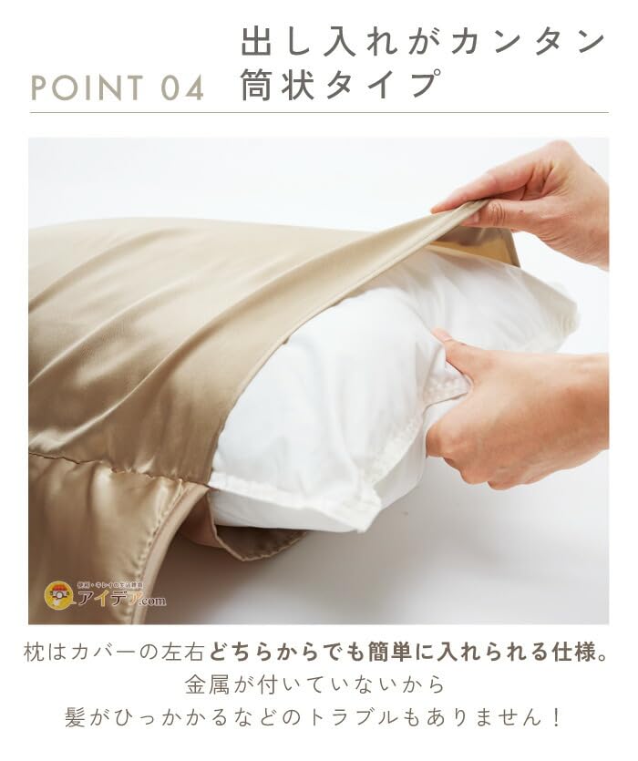 シルクでサラリ。髪、お肌を守る。表生地シルク100%。サラリとした触り心地。寝ている間に絡む髪や顔、デコルテをやさしくカバー。筒状だから枕を差し込むだけ。パッド部裏地エアメッシュ。パッド付きだからズレにくく、長い髪の毛をカバー。睡眠中の摩擦に。●表生地 絹 100%