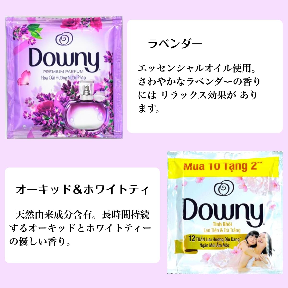 香り: サンライズフレッシュ、ミスティーク、ベビージェントル、パッション、ラベンダー、コリアンスプリング、ブリーズ、ダーリン、オーキッド&ホワイトティの9種類