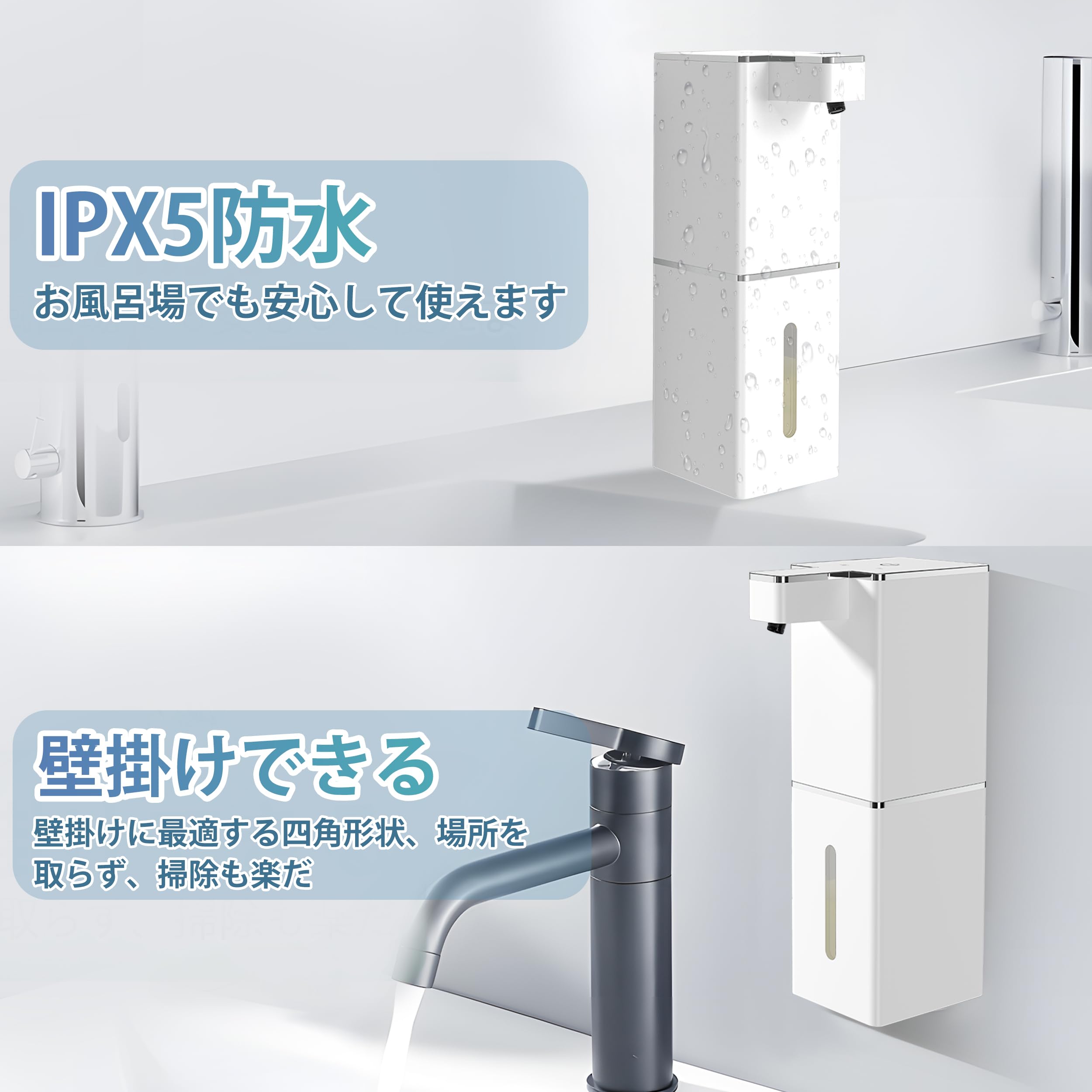 ソープディスペンサー ハンドソープ 自動 泡 吐出量4段階調 400ml 壁掛け ノータッチ オートディスペンサー IPX5防水 静かな音 ディスペンサー 細かい泡 充電式 食器用洗剤 キッチン 洗面所などに適用 Gogorelax
