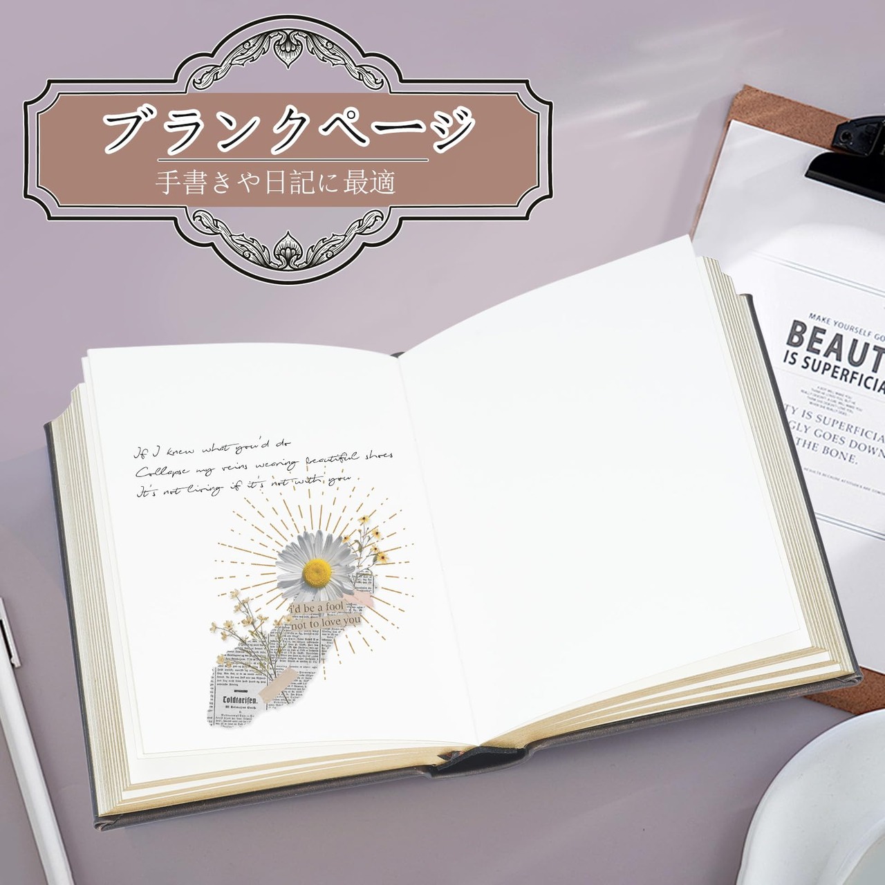 【白紙の内部】ノートの内部は白紙で作られ、線の制約がなく、自由に創造することができ、手帳や日記をつけるのに最適です。