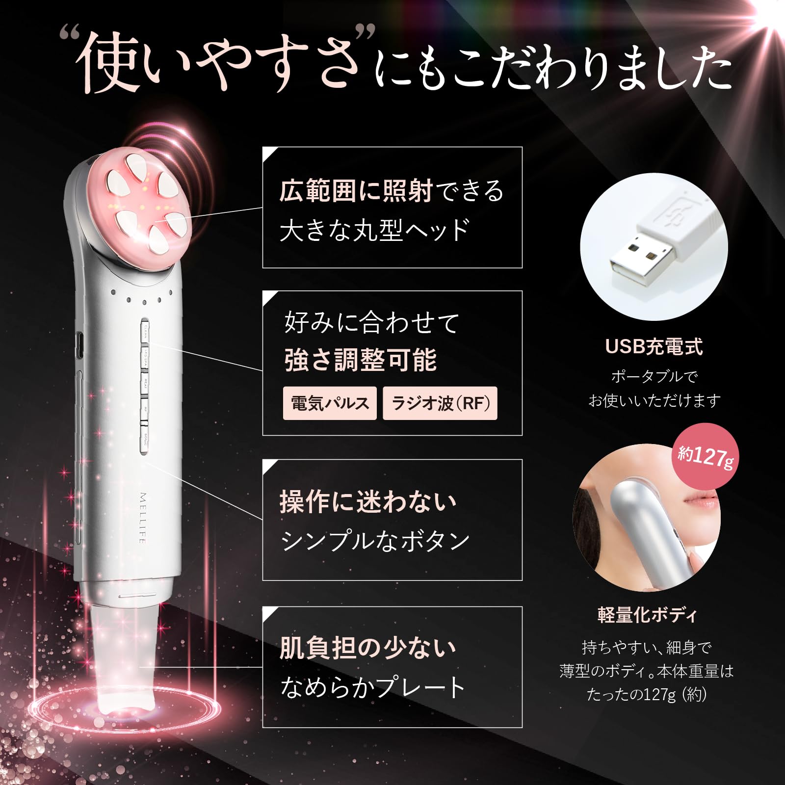 MELLIFE メリフ トータルフェイシャルプラス 美顔器 毛穴洗浄 ems rf led 超音波振動 イオン導入