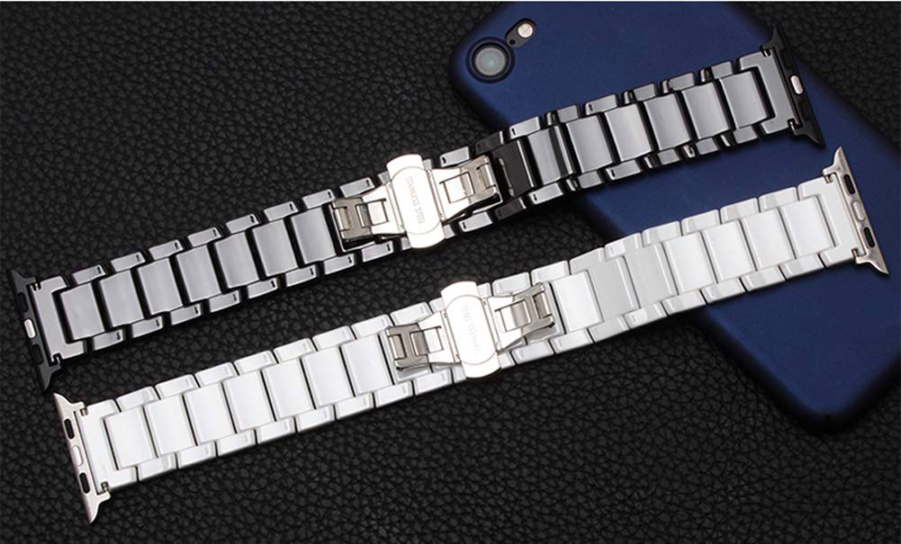 [Sakulaya] Apple Watch バンド セラミック製 アップルウォッチ バンド 長さ調整簡単 Apple Watch Series 9 8 7 6 SE Series 5 45mm/44mm/42mm 対応(ブラック (45mm/44mm/42mm)