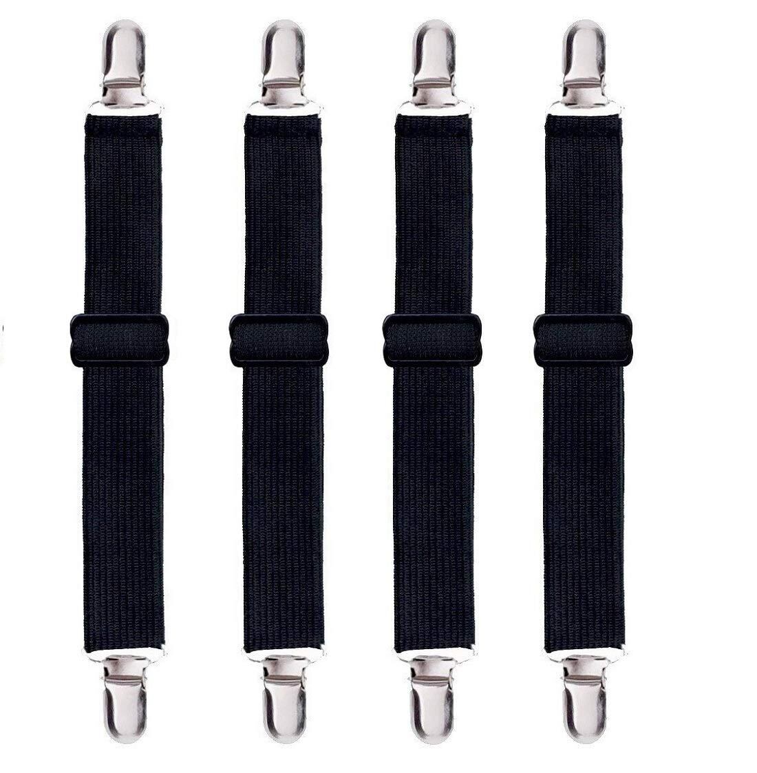 Andexi ベットシーツクリップ 布団 ずれ防止 シーツズレ防止 シーツ固定 布団固定用 敷き毛布滑り止め 調節可能 コーナー止め 四個セット 黒