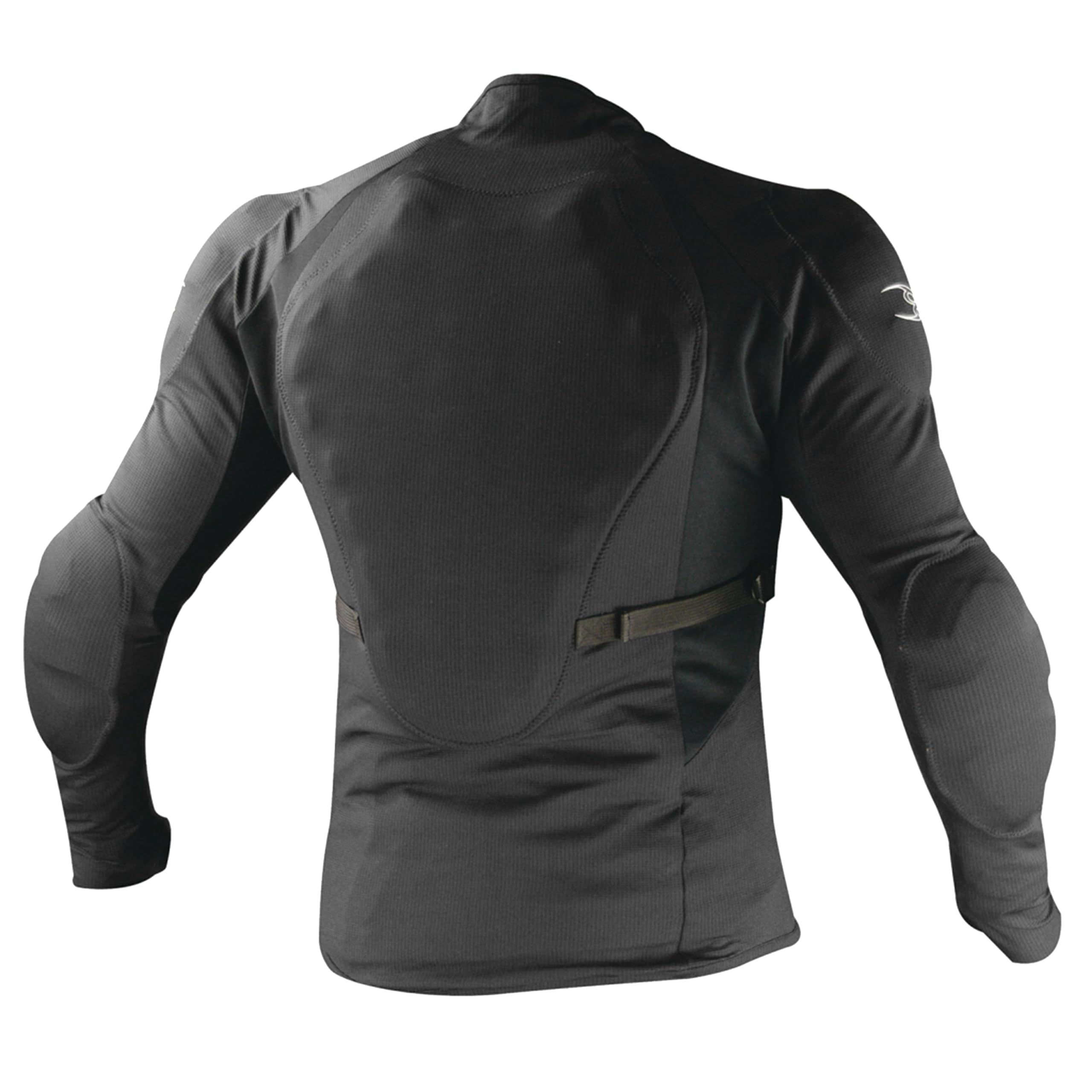 伸縮性と吸汗性に優れるクールマックスを使用したインナーシャツの中に肩・肘・胸・脊椎にプロテクターを内蔵したジャケットインナーとも言えるプロテクションウエア